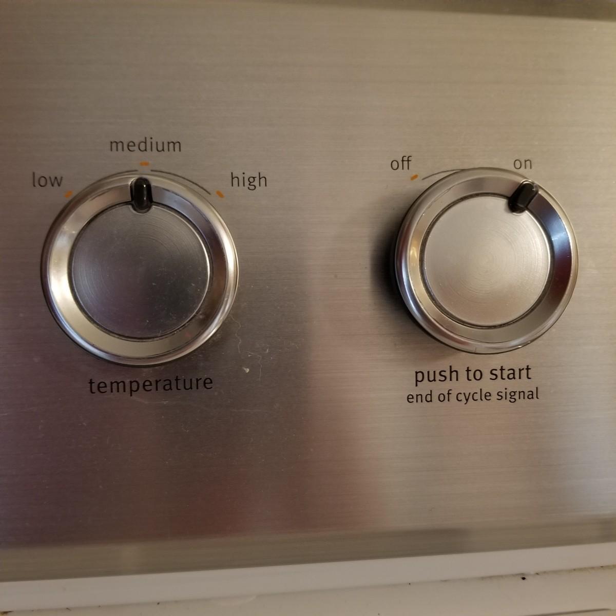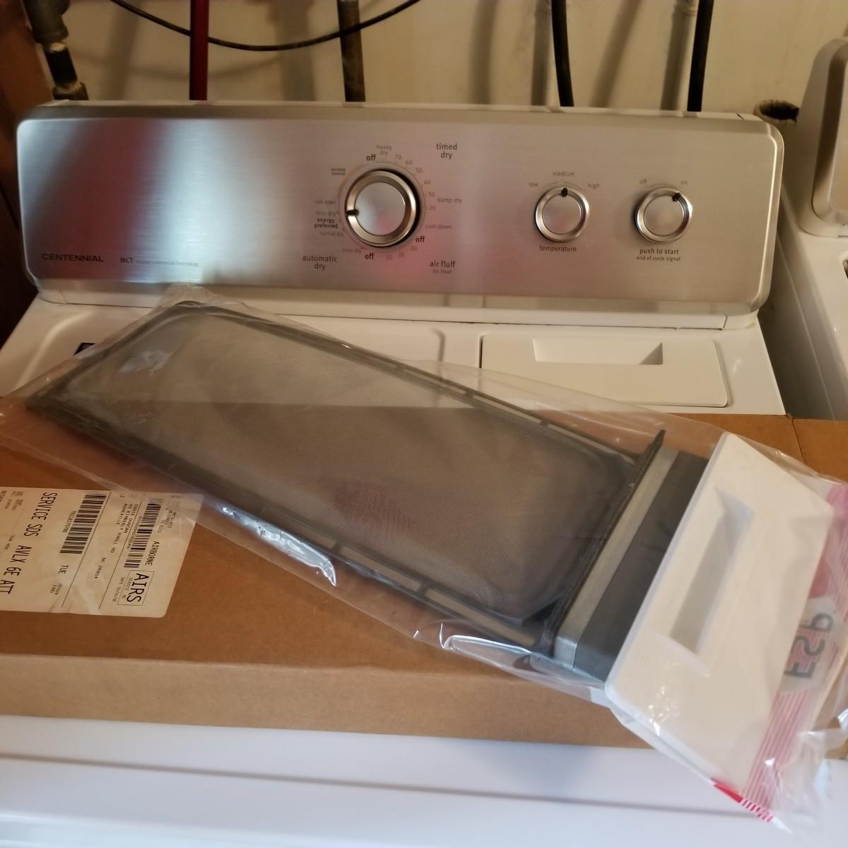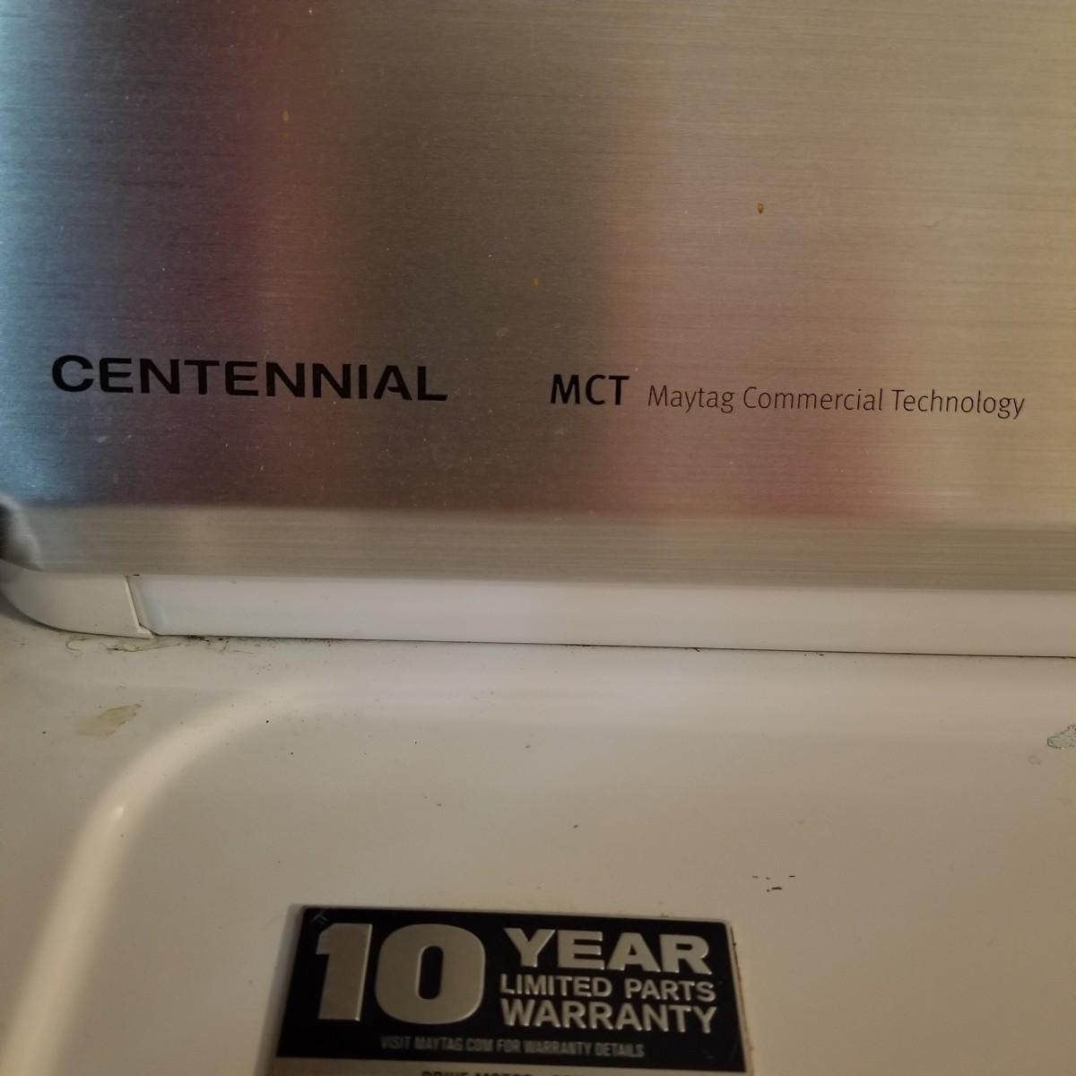Very clean Maytag dryer. Front load, white with silver panel. Comes with additional lint screen. Front door is missing handle. Tested working. 29"x26"x42". Companion washer available separately. See photos for details. Local pickup only, bring assistance to move.