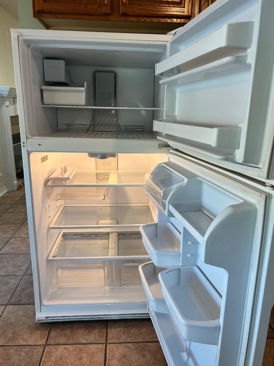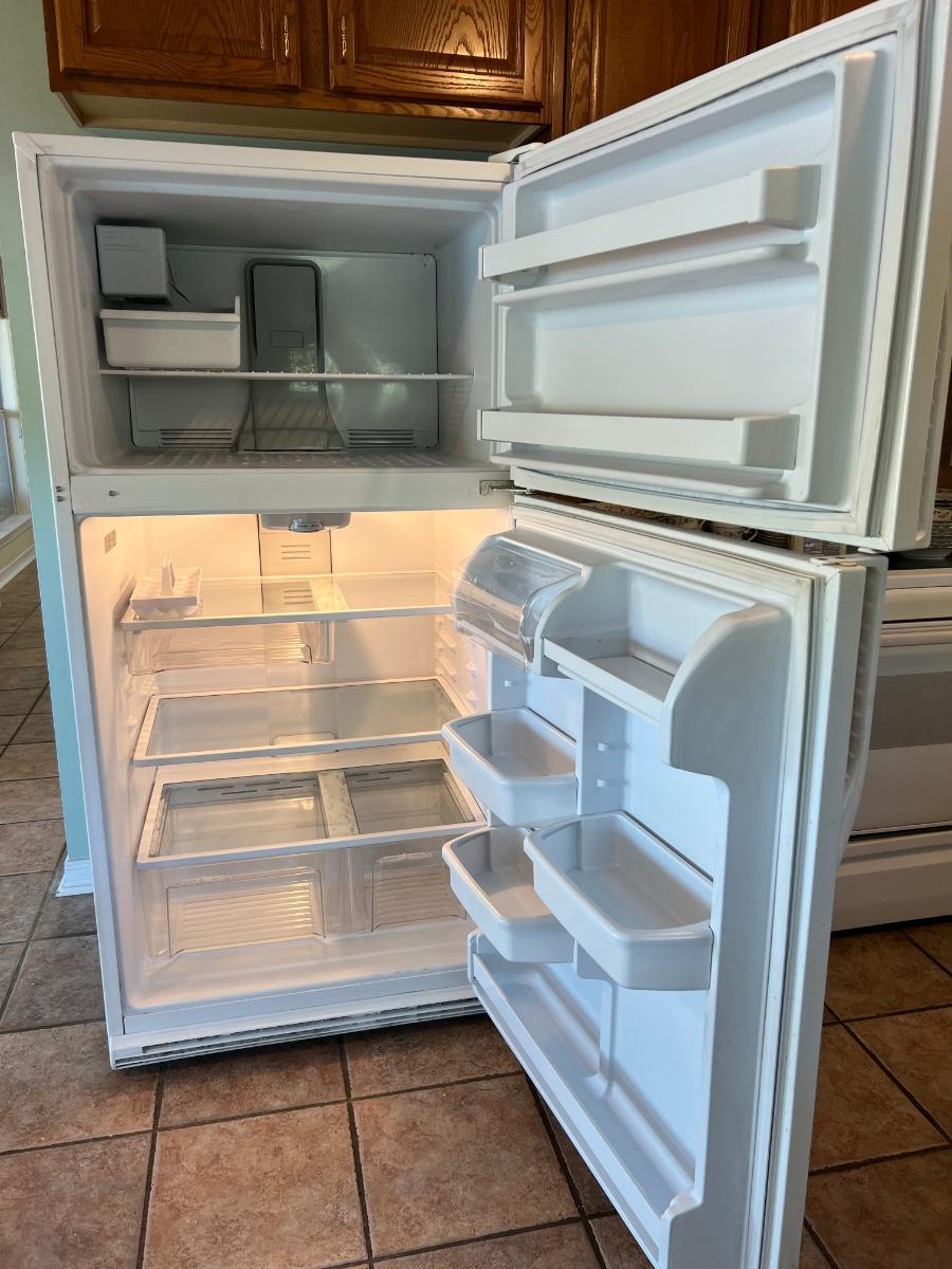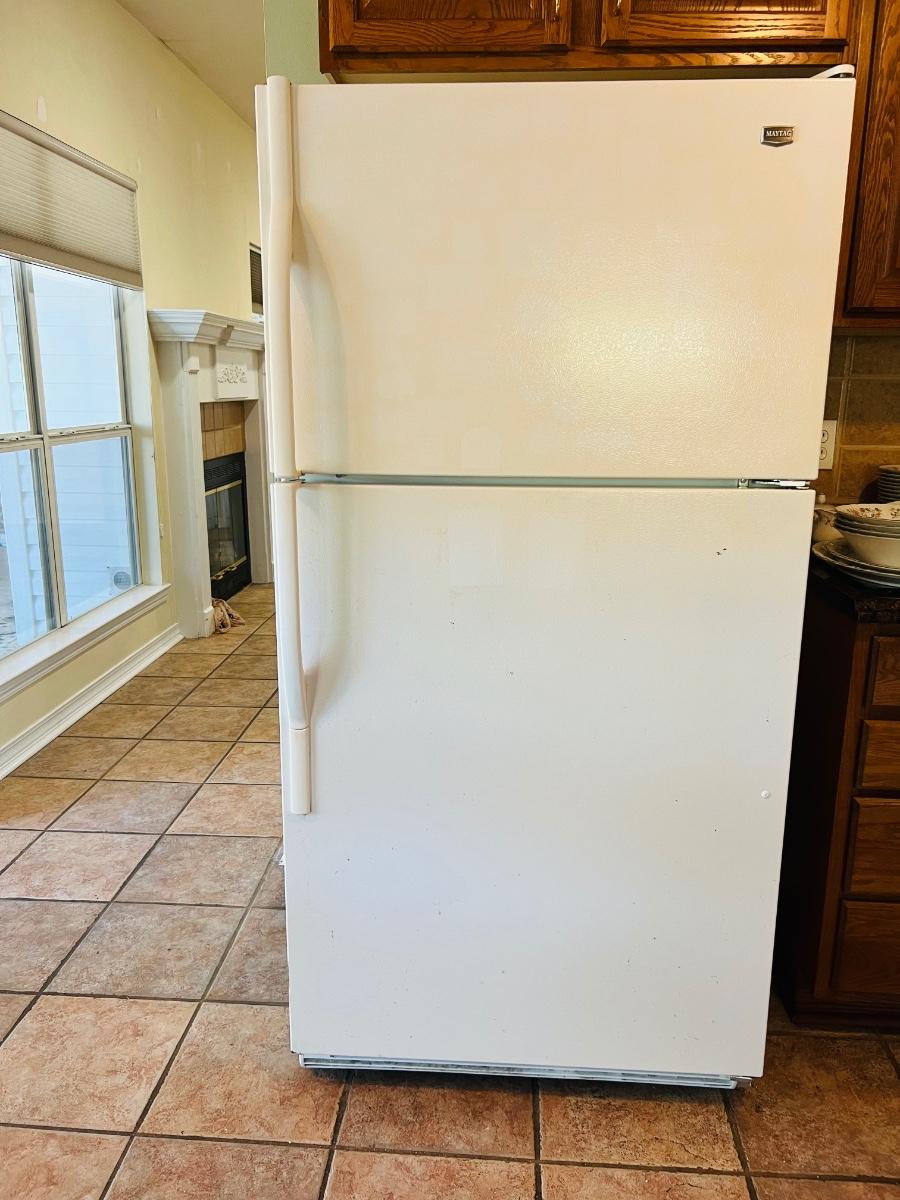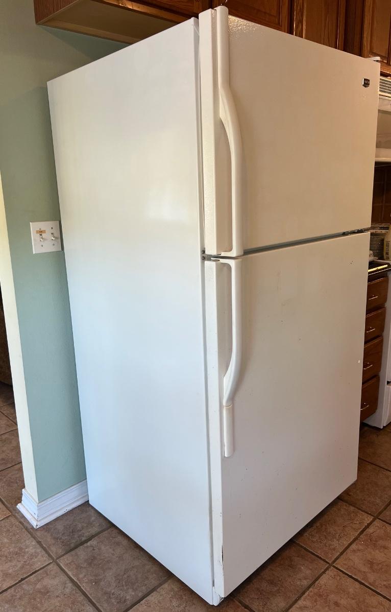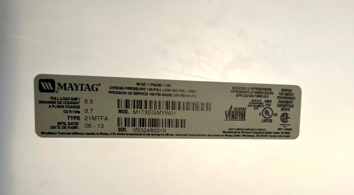 MAYTAG Refrigerator Model M1TX EGMYW01. Works as it should. Will remain plugged in so winning bidder can verify. Measures 66 1/2 inches tall, 33 inches wide and 30 inches deep.