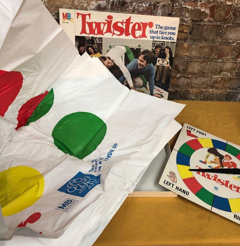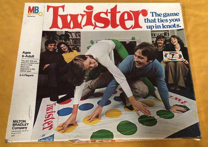 Here is an early version of the Twister party game from Milton Bradley...Very good condition...