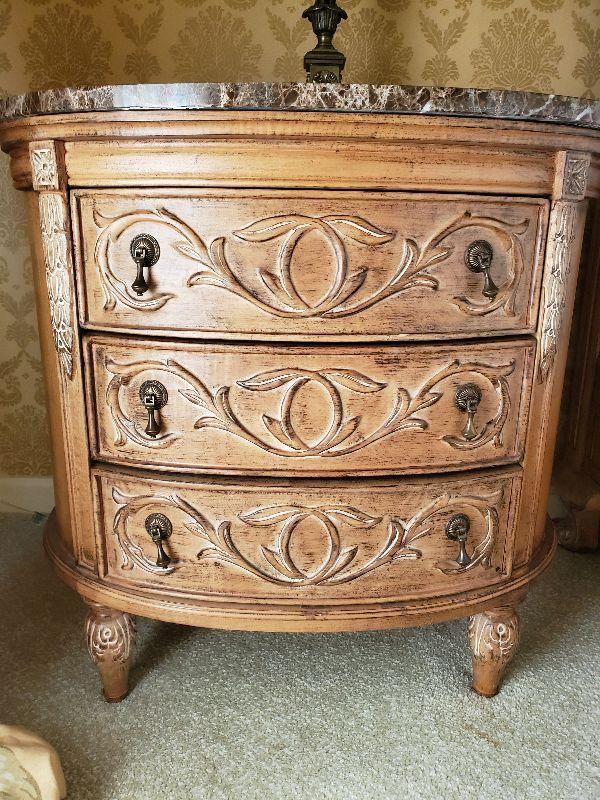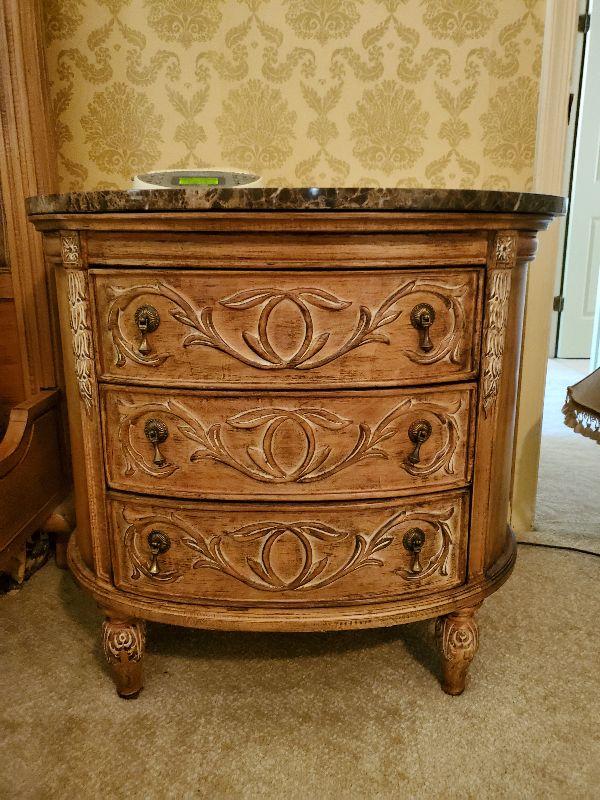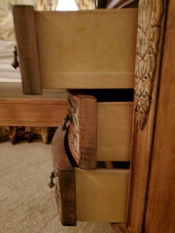 This bed and matching nightstands are made by the high end furniture company Jeffco out of North Carolina. This is French Louis XVI Style. Made between 1999-2001 this set is truly stunning. It cost our client $20,000 and now is up for the highest bidder starting at just $1,200!