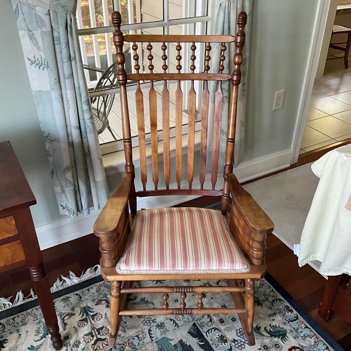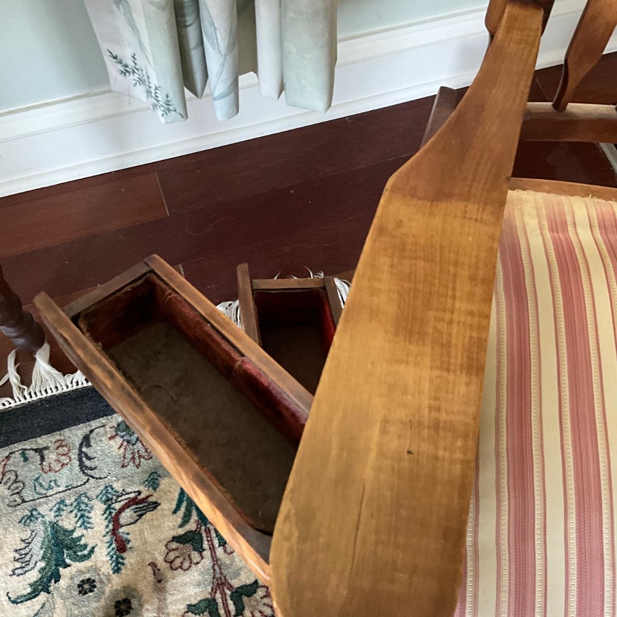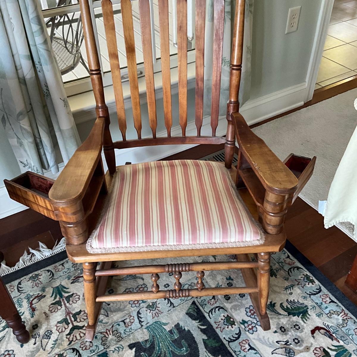 Antique rocking chair with two small drawers on each side for sewing