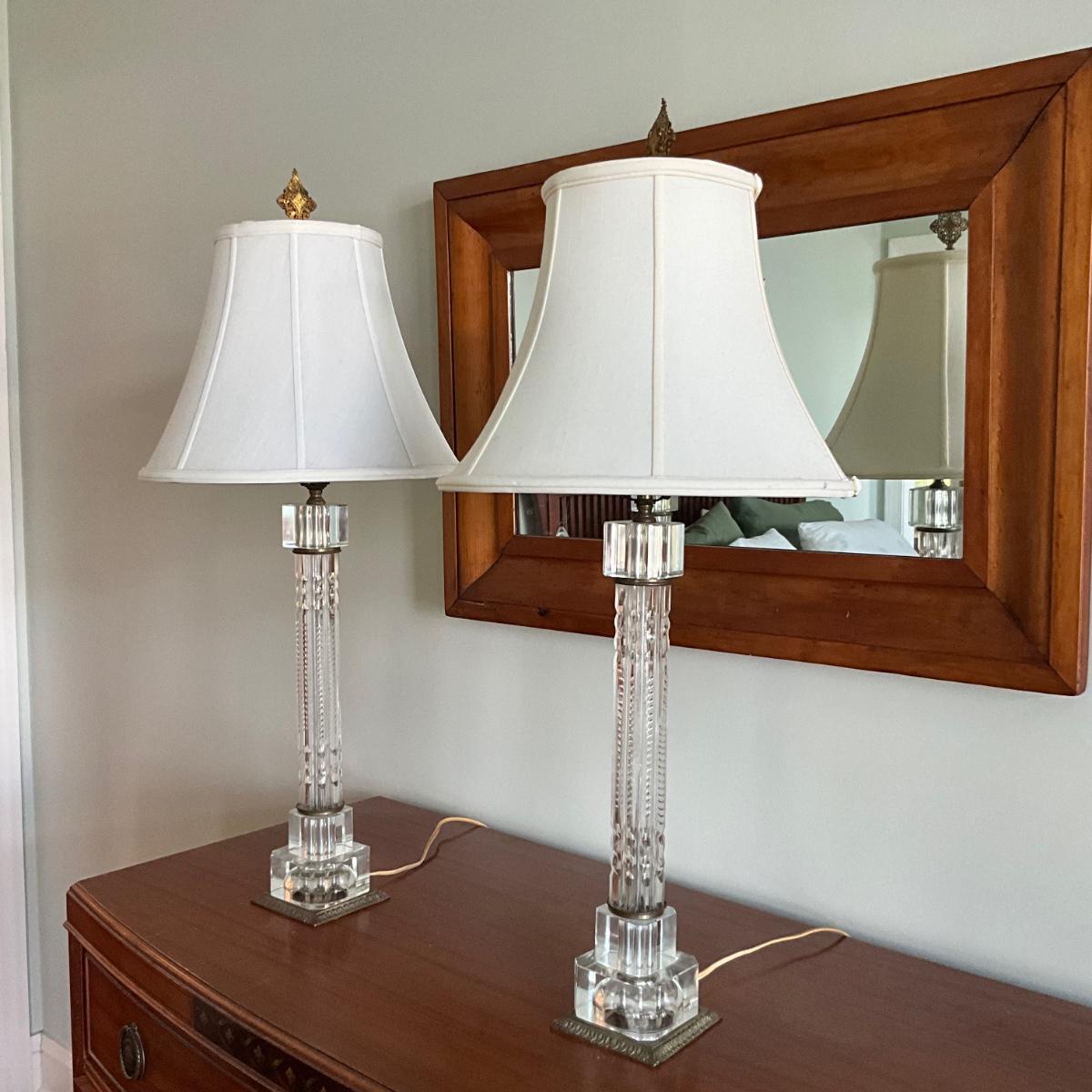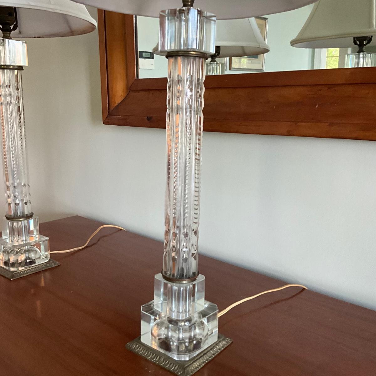 MB-1036 Pair of Vintage Cut Crystal Lamps with Brass Finial