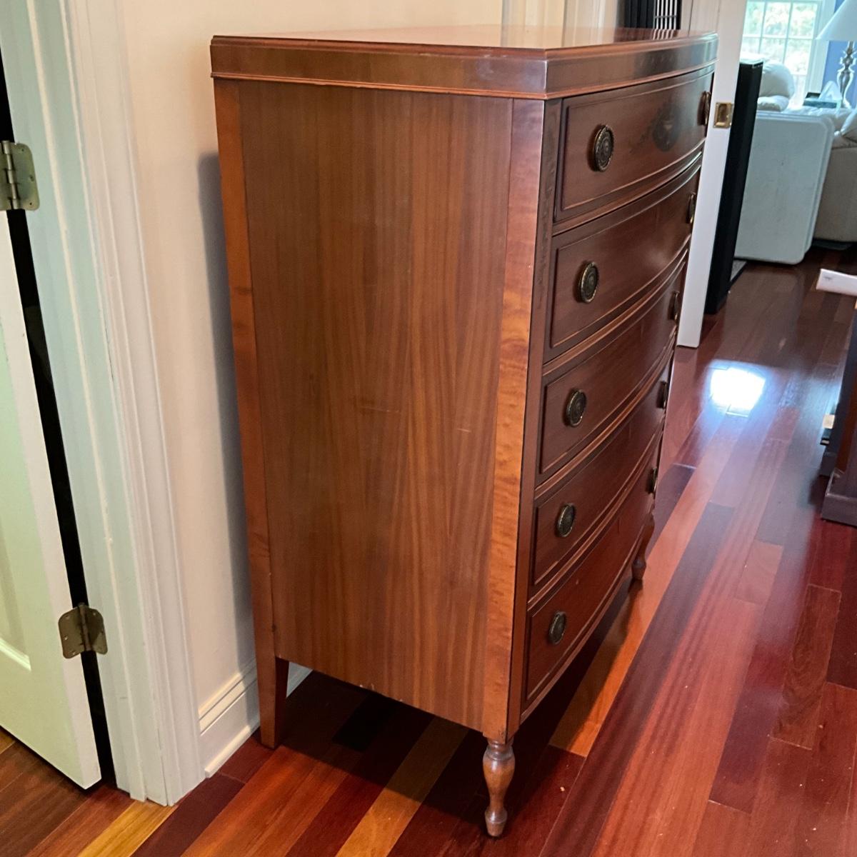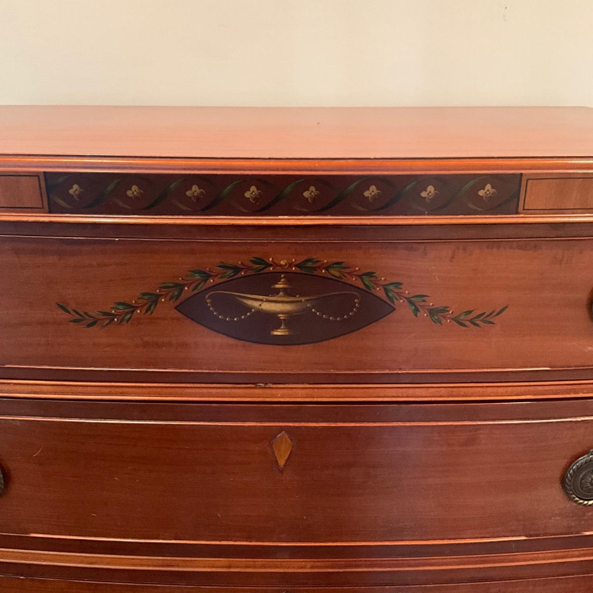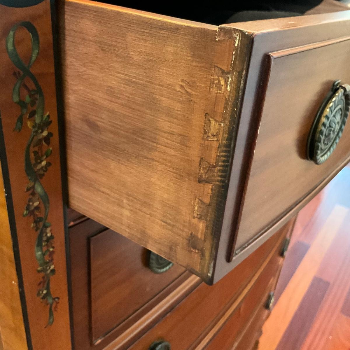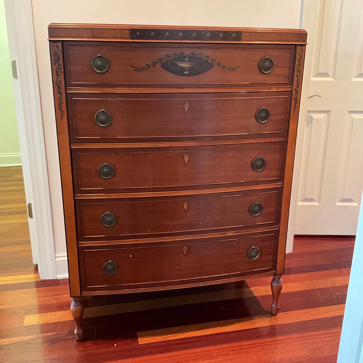 MB1268 Vintage IRWIN Hand painted NeoClassic Five Drawer Highboy Dresser