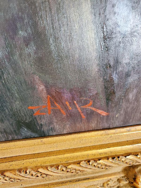 Stunning framed oil painting signed ZAIR, let this be a discussion piece at your house! All you have to do is have the highest starting bid! Measures 45"w x 54"h - My client spent $4k on this beauty and now it goes to the highest bidder starting at just $500! Good luck and happy bidding!