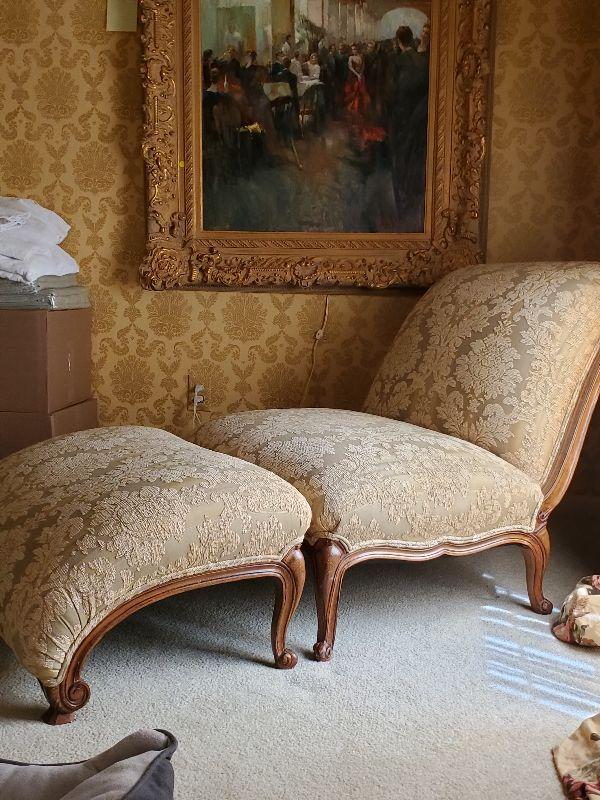 MB-15: Beautiful Gold Scrolled Chair and Ottoman