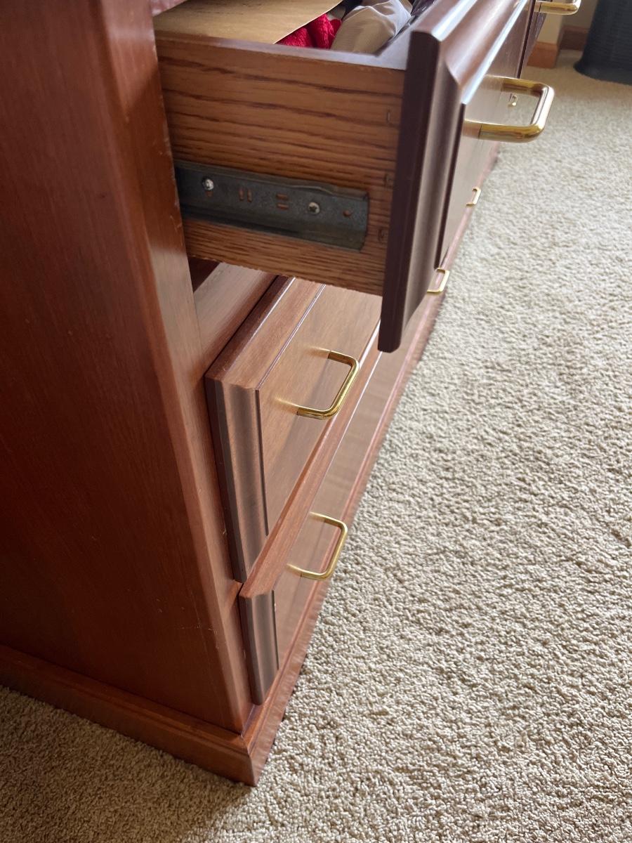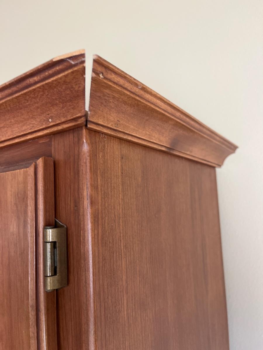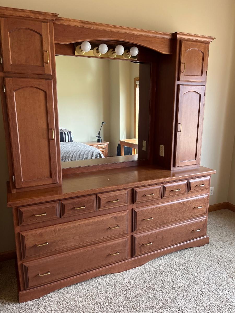 74” w x 21” d x 80” h. There is one damage piece top right corner see pictures. As well as one spot on the top of the dresser also in pictures. 2 pcs