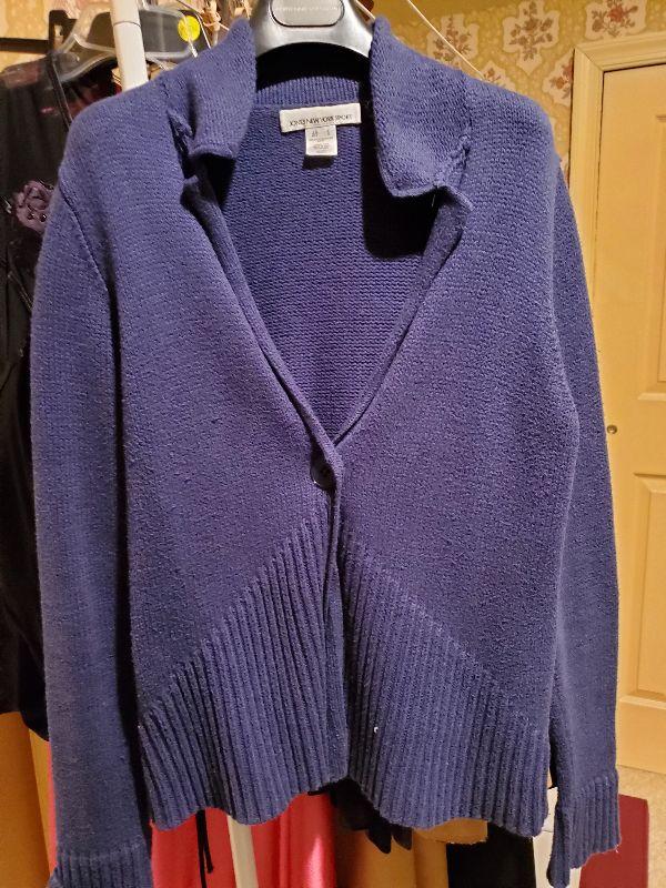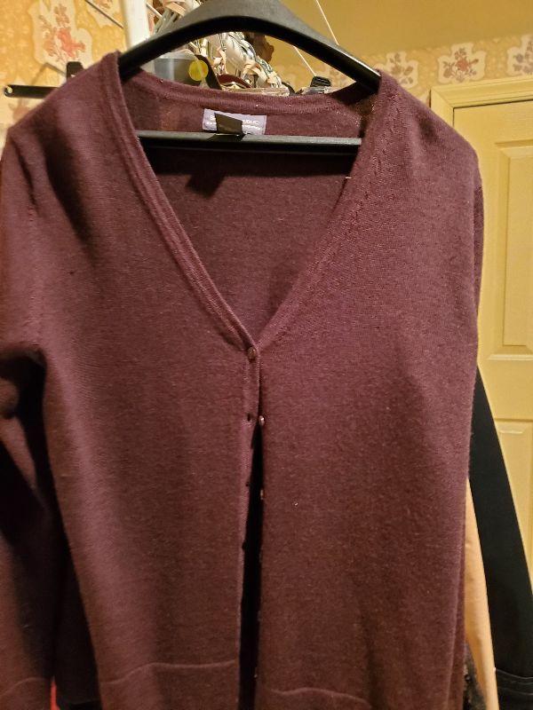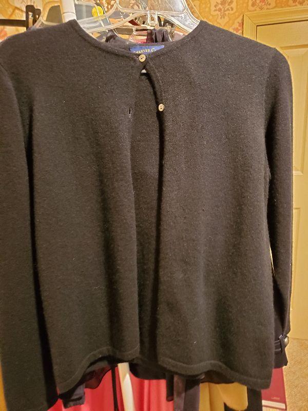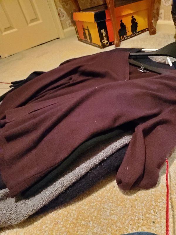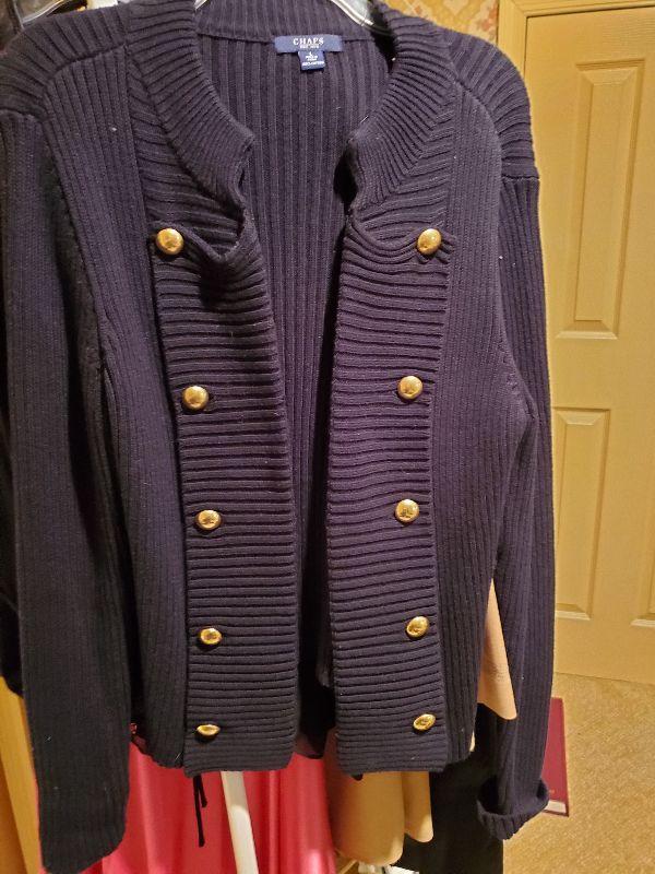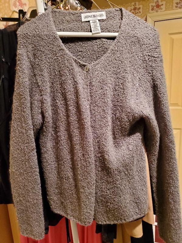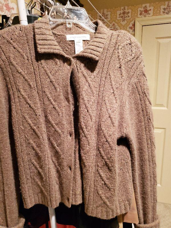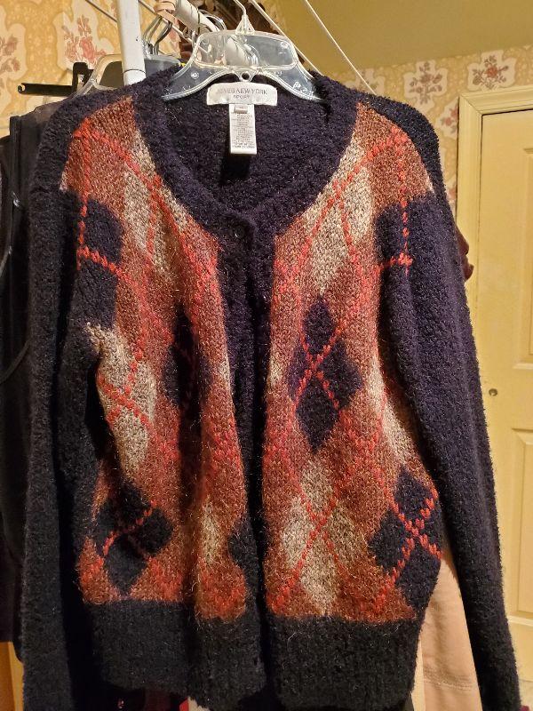Sweaters size med and large. Most of the owners clothing is high end and in great condition, She averages size med or 8 to 10. Happy bidding!