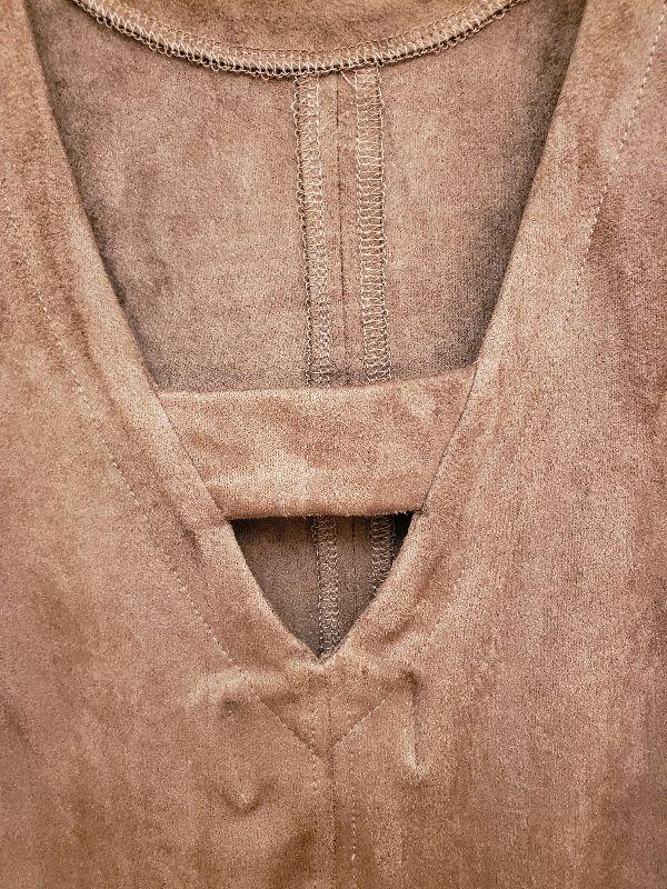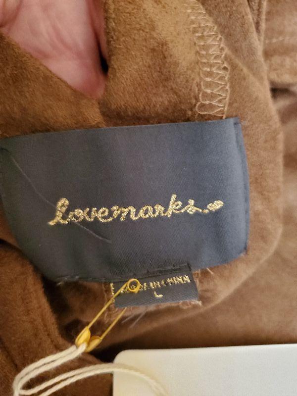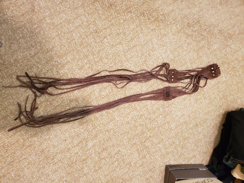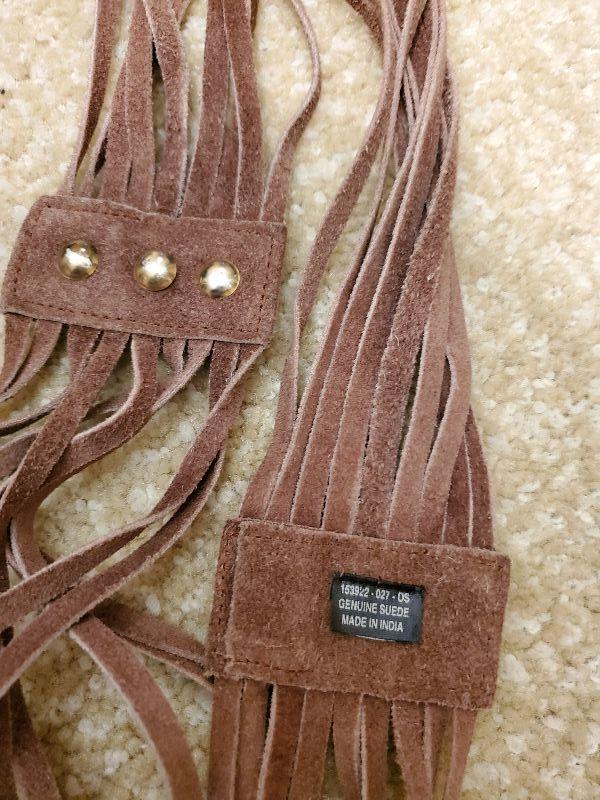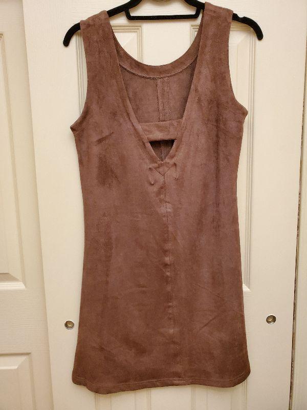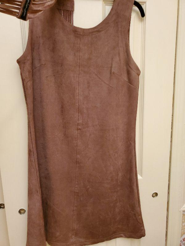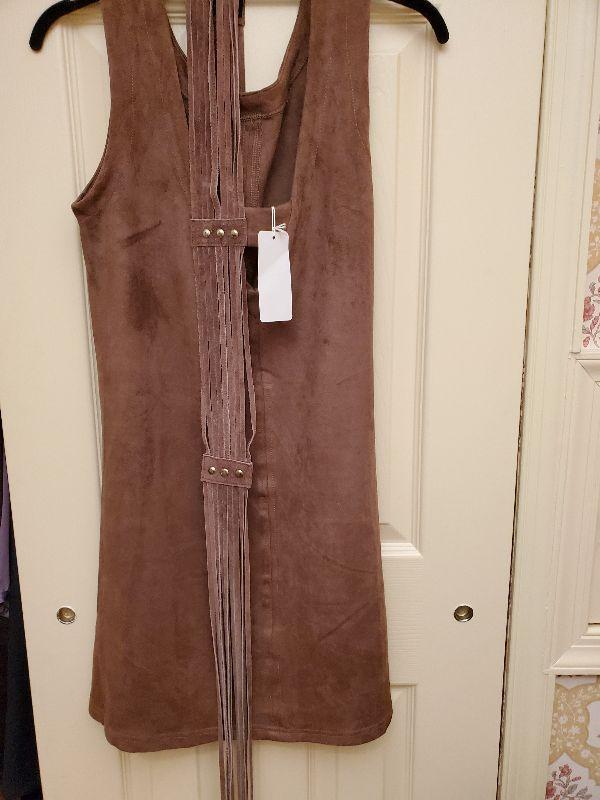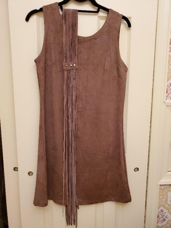 Suede style dress with suede, fringe belt. New with tags. Size Lg
