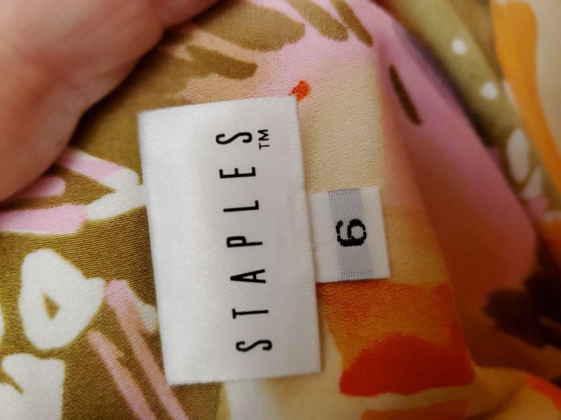 Colorful, sleeveless dress by Staples, new with tags. Size 6