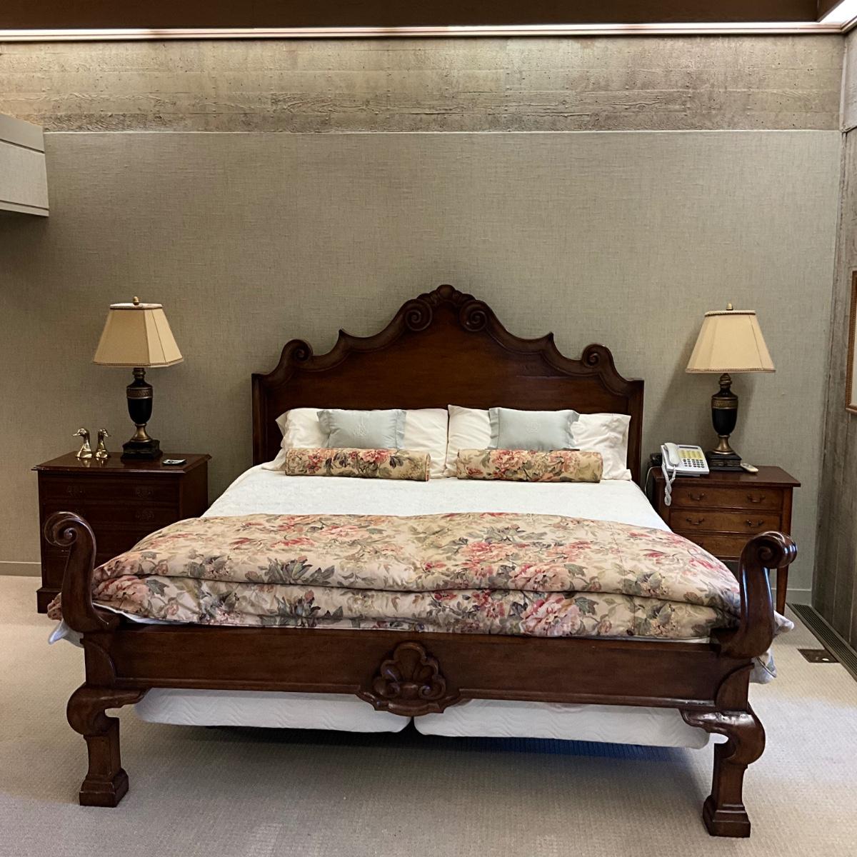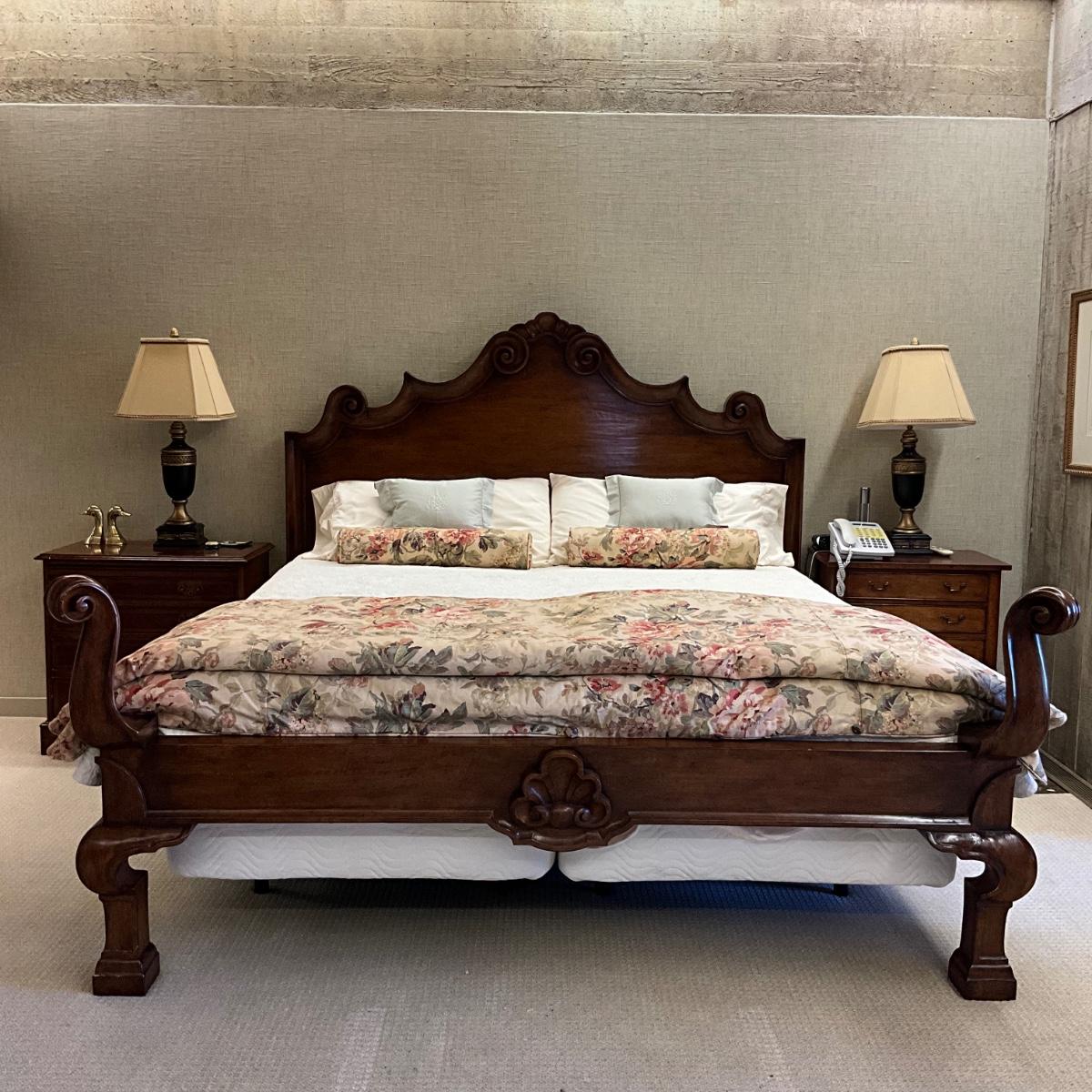 MB636 Large Mahogany Michael Taylor Italian Carved King Bed