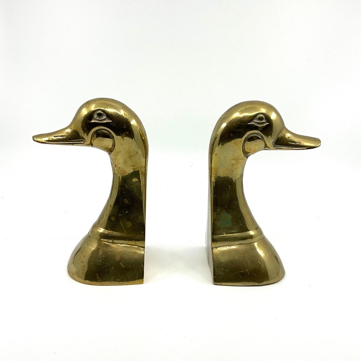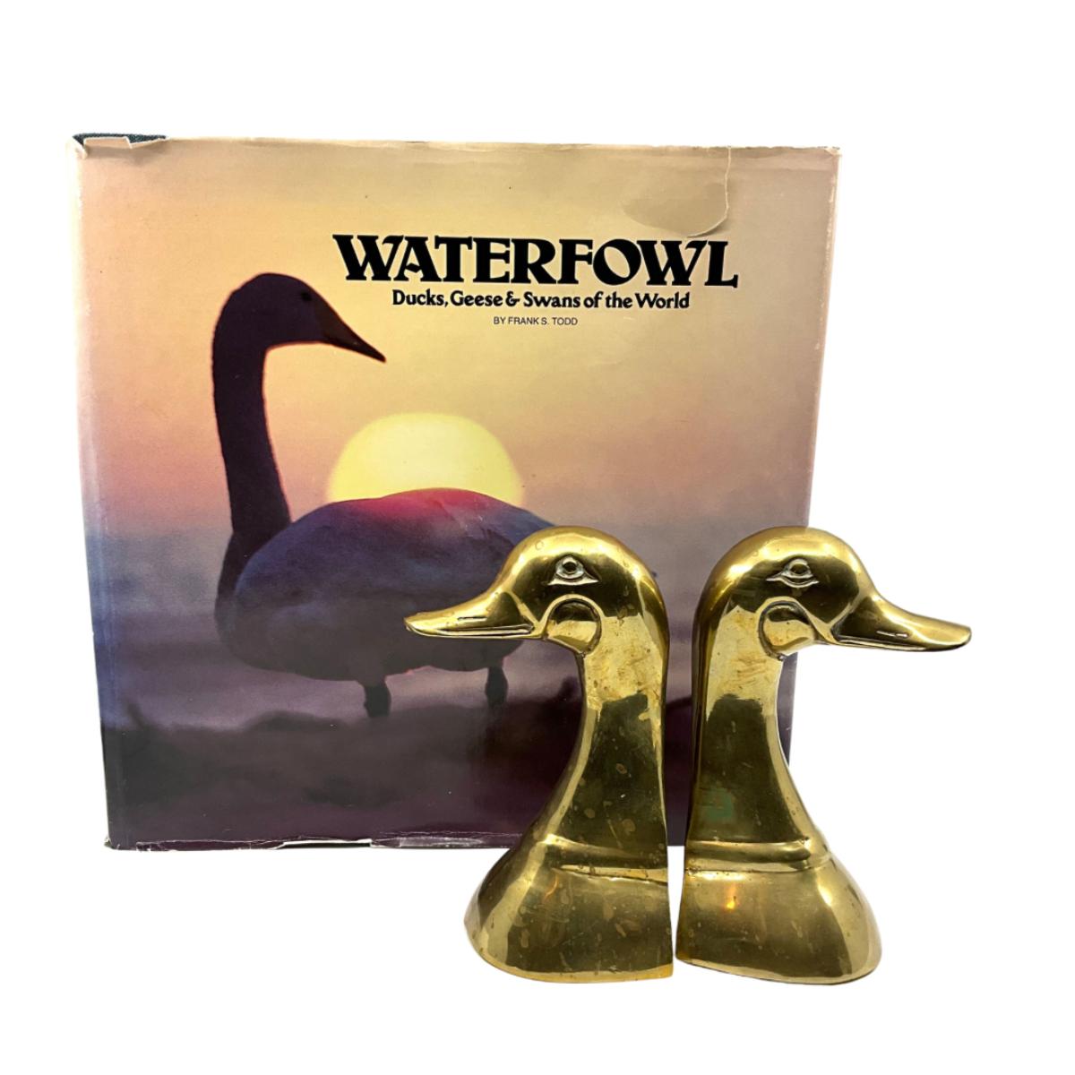 MB671 Vintage Duck Head Brass Bookends with Waterfowl Hardback Book