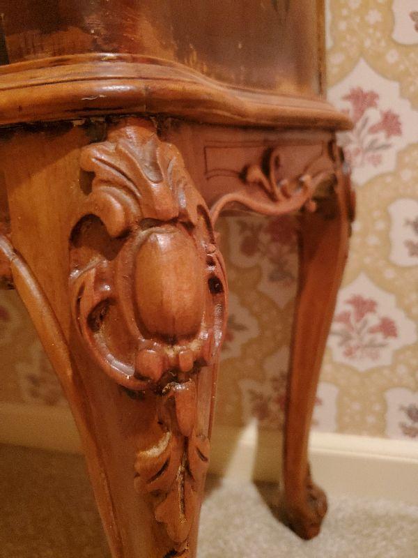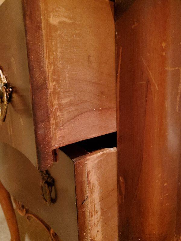 Please bid on BCN1 if you want the matching one. They were listed separately somehow. This piece is gorgeous and does show some beautiful antique age. It is smaller measuring 37 inches high, and 36 inches long. Functional as a nightstand or jewelry chest. Please see all of the pictures for condition. Happy Bidding