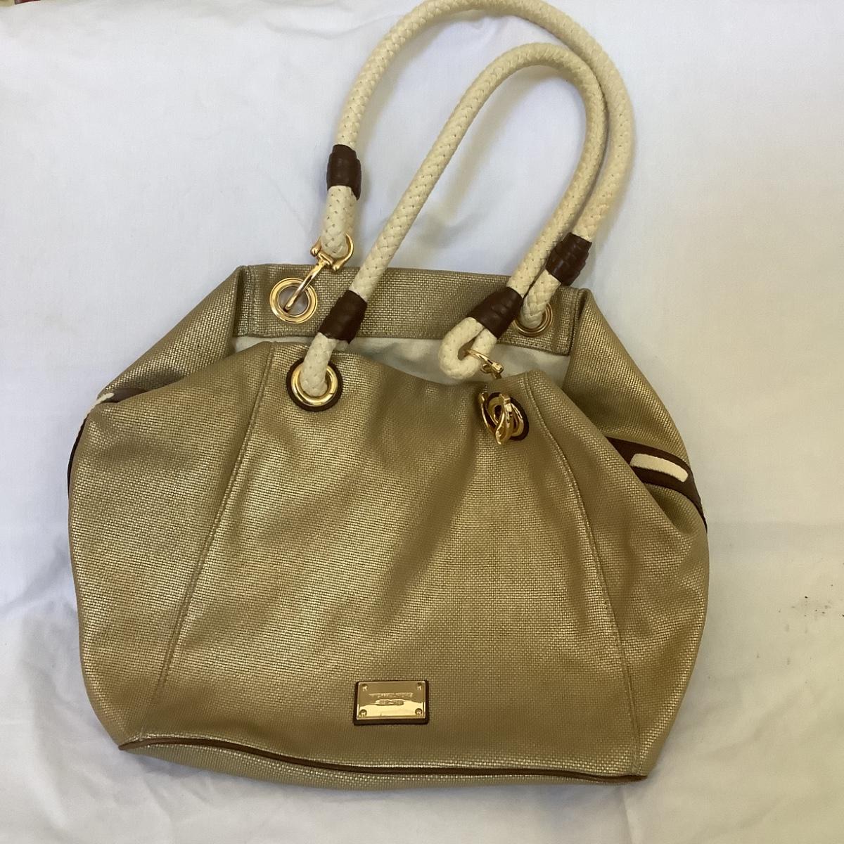 MB8208 Lot of Michael Kors Gold Taupe Rope Handled Handbag