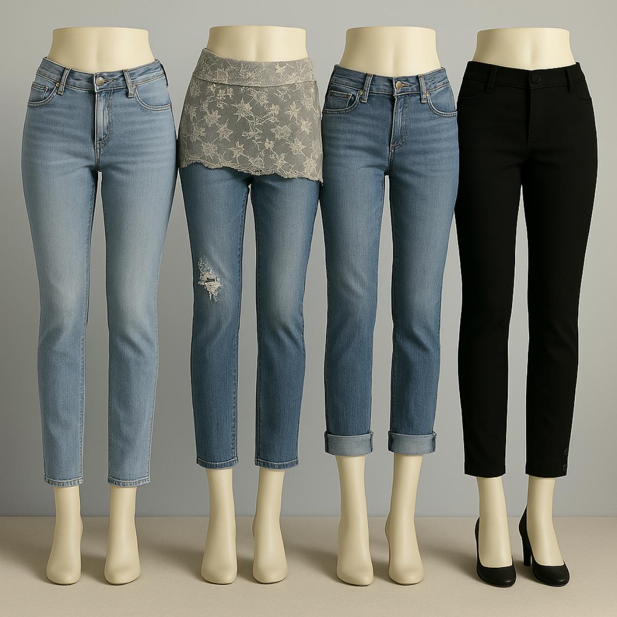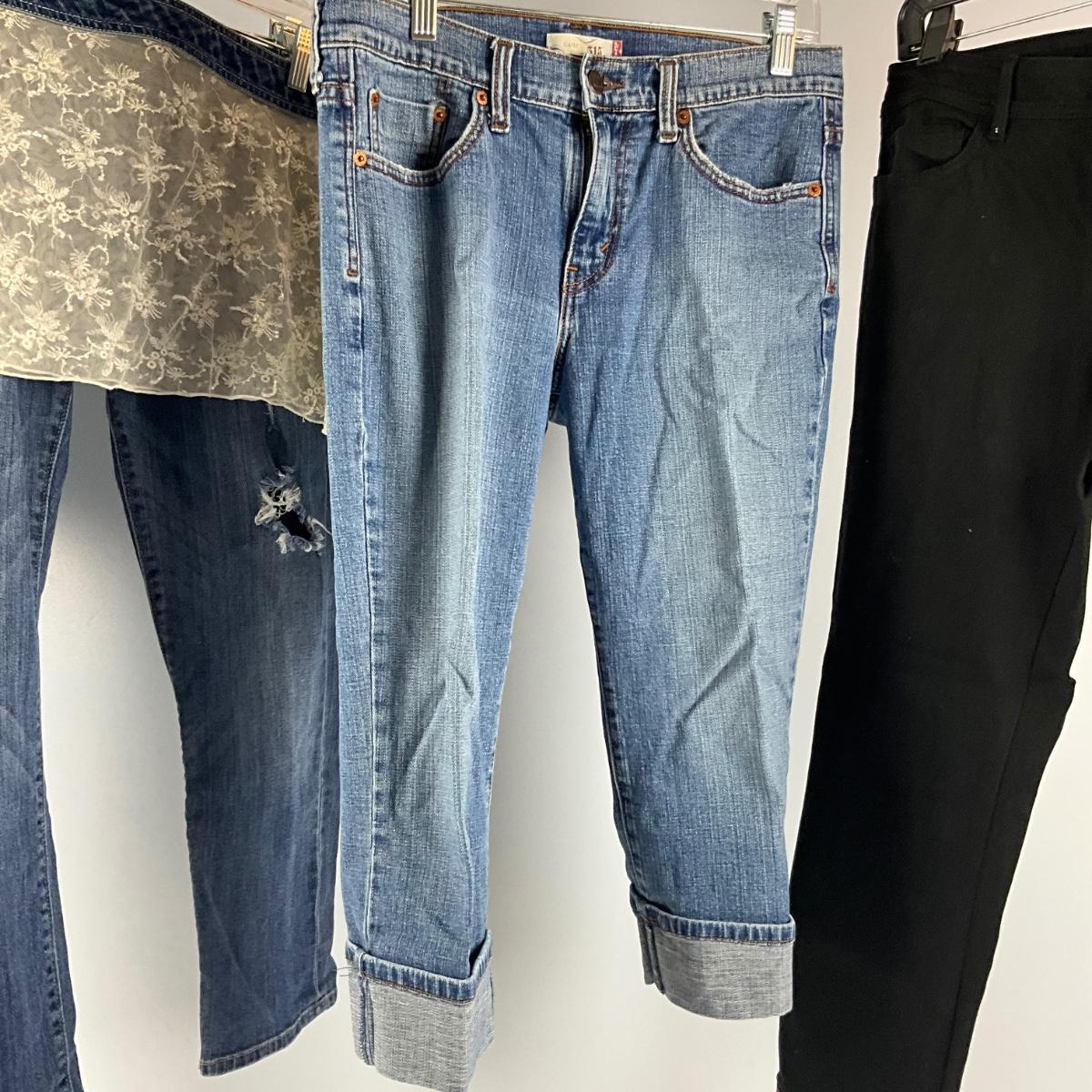 J.Jill black jeans size 6 , Jennifer Lopez blue jeans with holes size 6, D.Jeans denim size 10 , denim lace skirt, capri jeans levis size 8