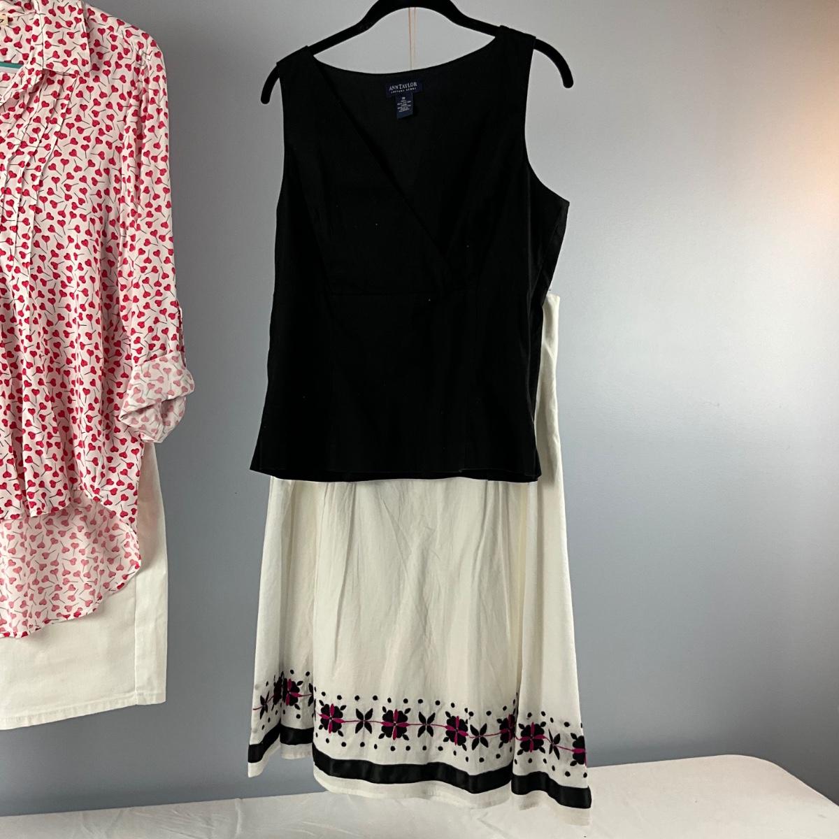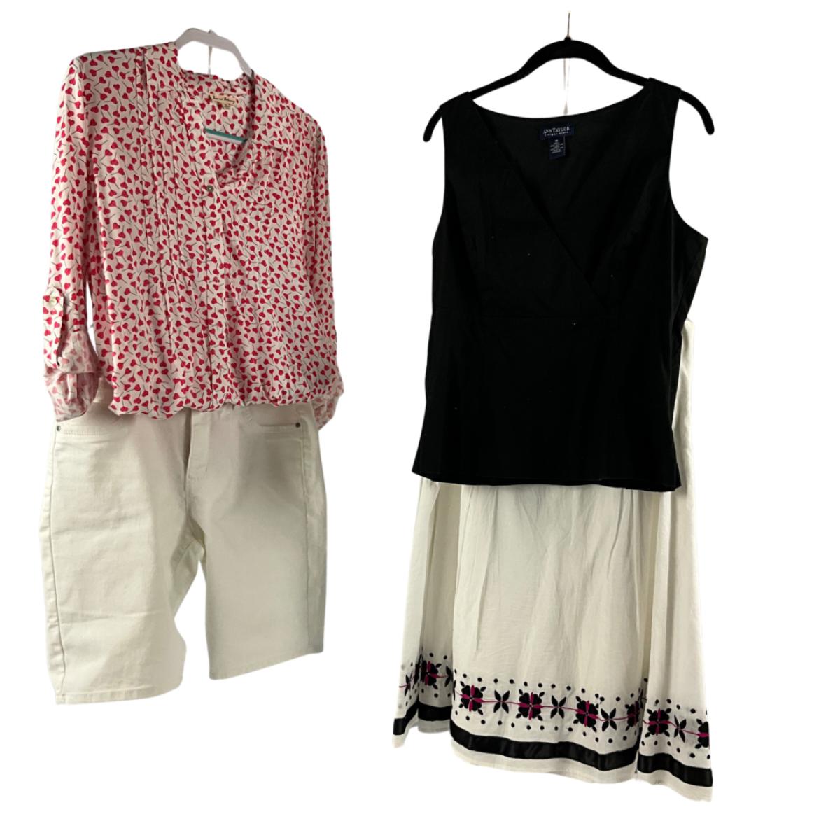 D. Jeans size 8 , Willi Smith Skirt size 8, Ann Taylor Black Top size 10 , Jane & Delaney Heart Top size 8