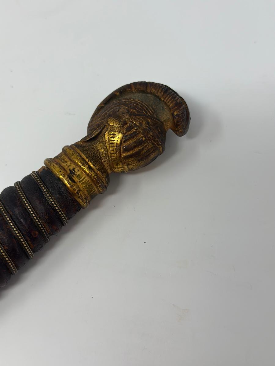 C. 1800s, the blade near the hilt is etched The M.C. Likely & Co. Columbus, O. It is etched in the middle of the blade depicting 'LOOM' with a moose head. The skin grip is in nice condition. The blade measures 28 inches in length.