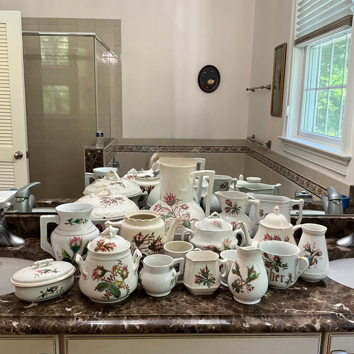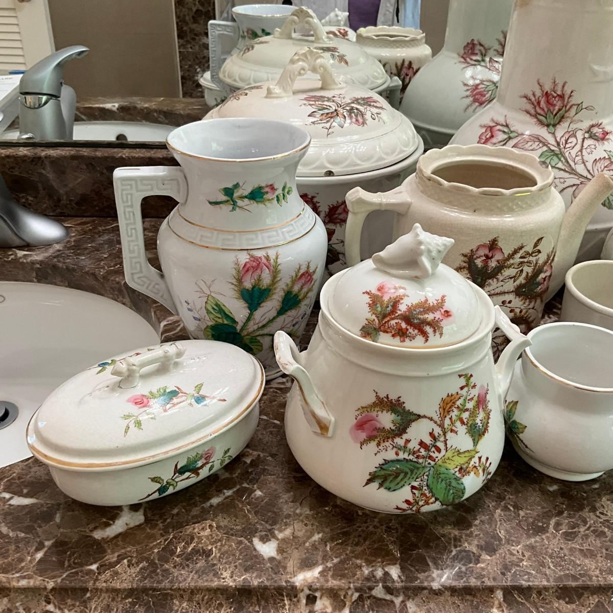 MB788 Antique Ironstone & Porcelain Moss Rose Set