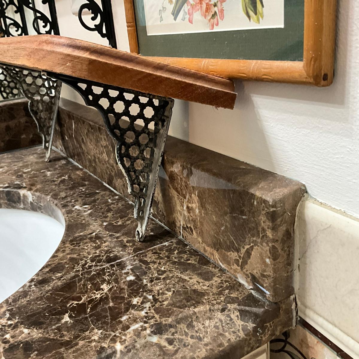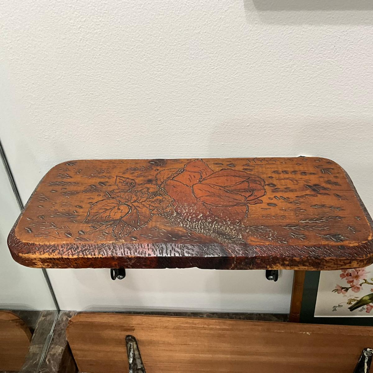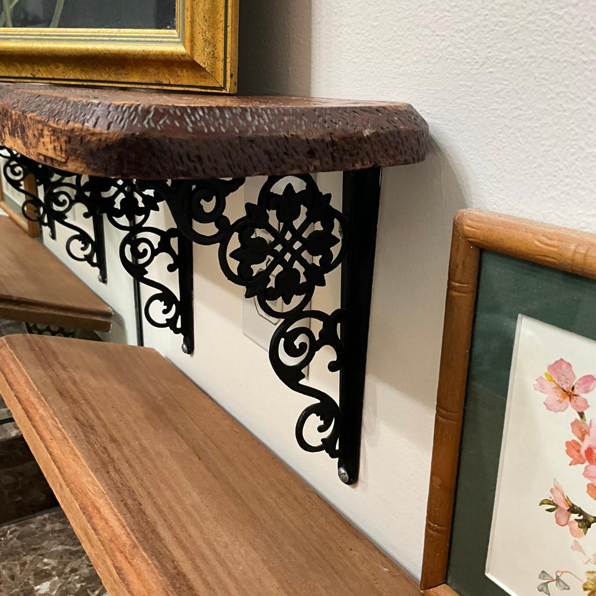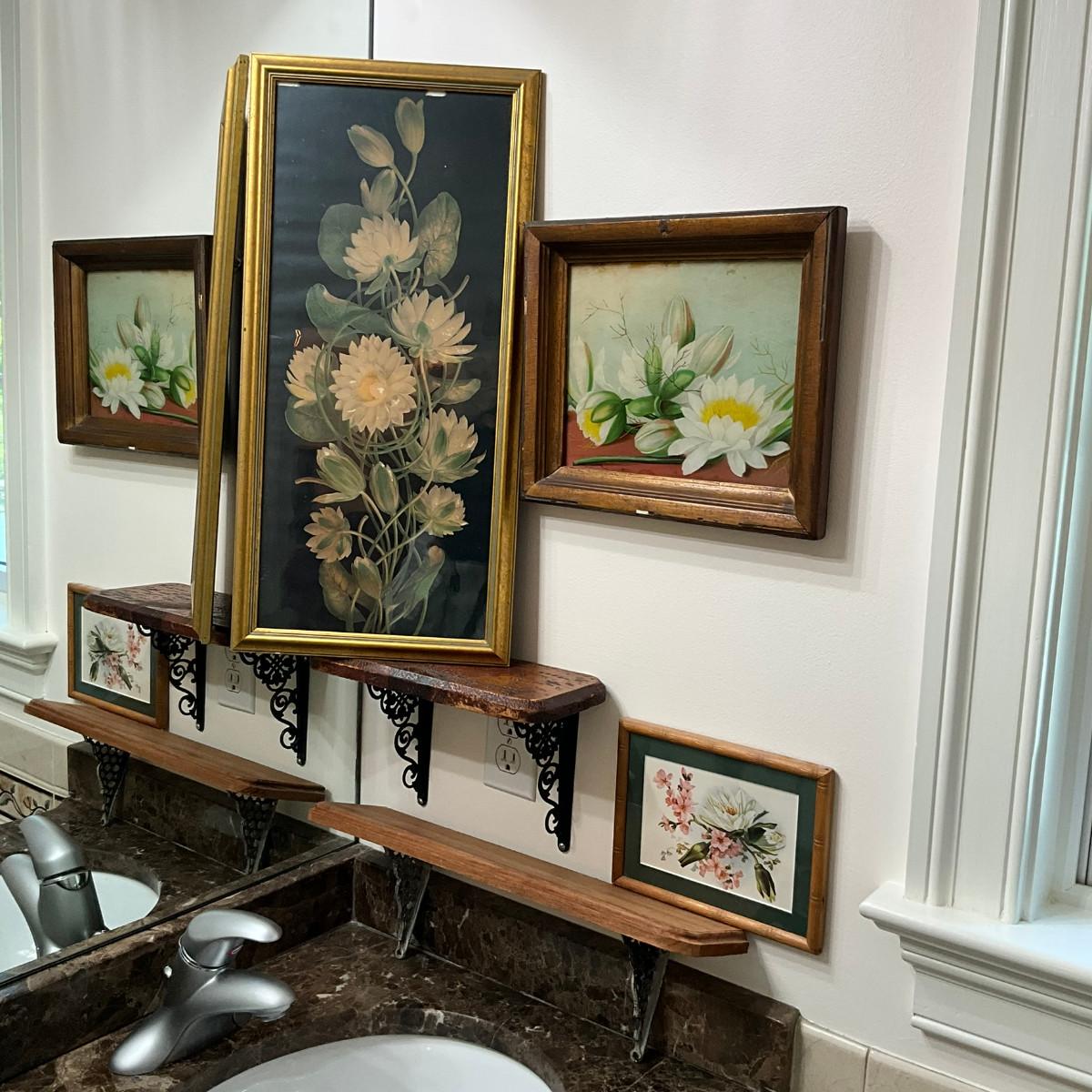 MB789 Antique Lotus Flower Prints With Two Wooden Wall Shelves