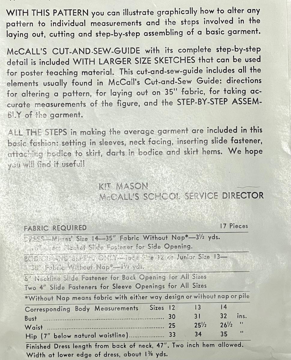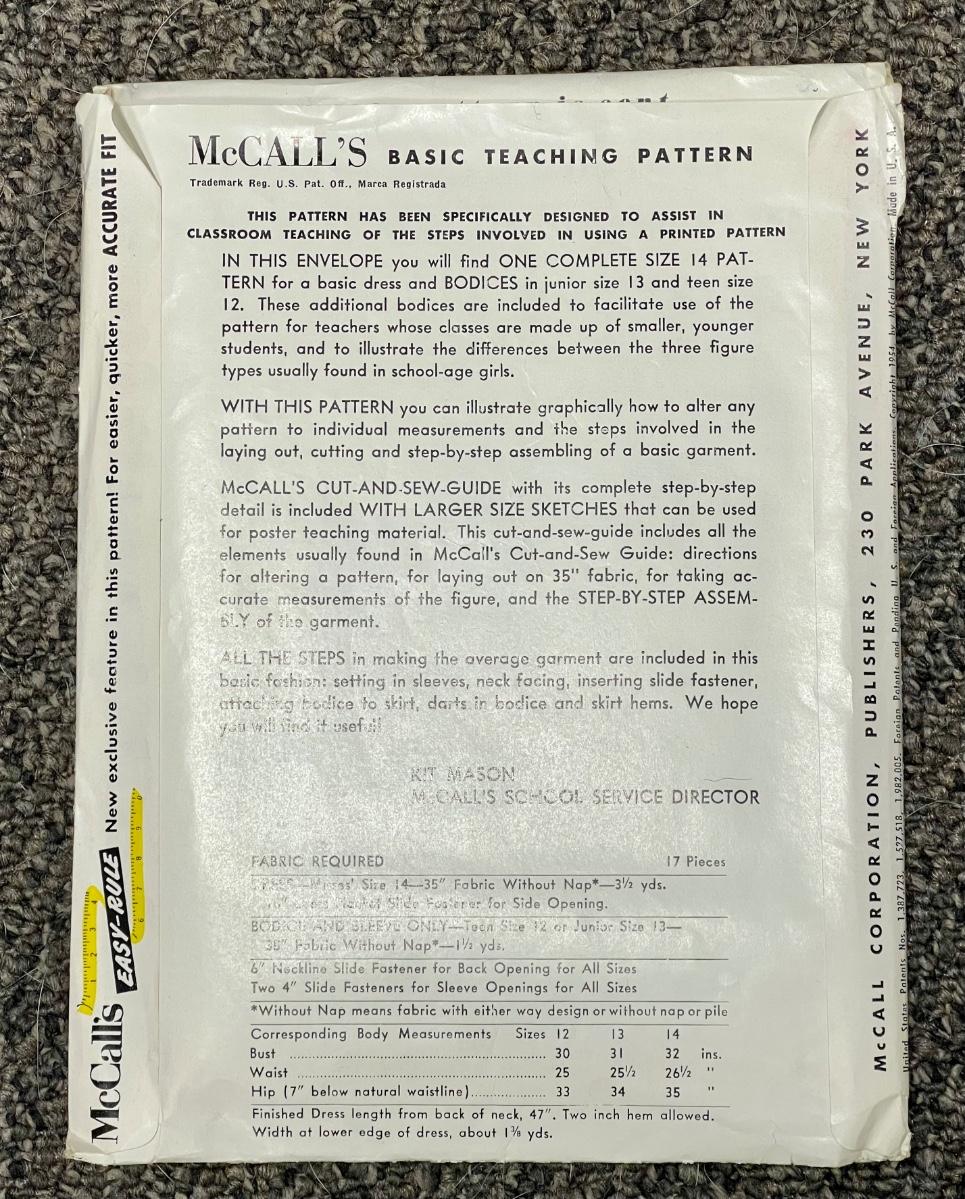 McCall’s Basic Teaching Pattern sealed basic dress pattern size 14