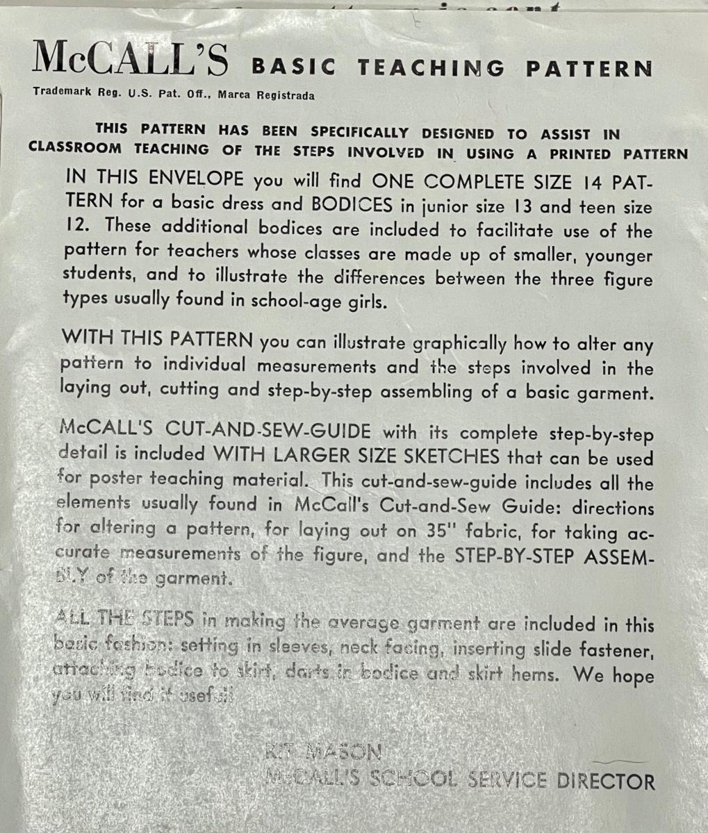 McCall’s Basic Teaching Pattern sealed basic dress pattern size 14