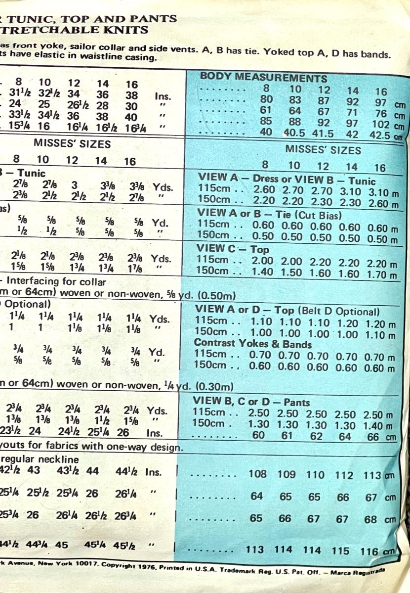 McCall’s Marlo’s Corner No. 5195 Misses’ Dress or Tunic, Top and Pants for Stretch Knits size 10 bust 32 1/2