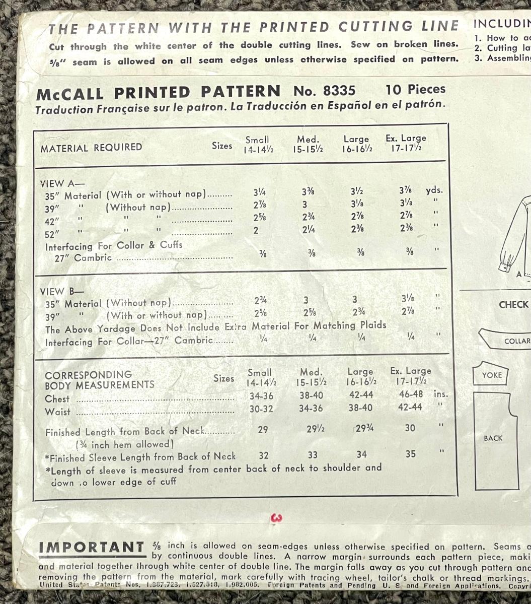 McCall’s Men’s Shirt No. 8335 vintage sewing pattern