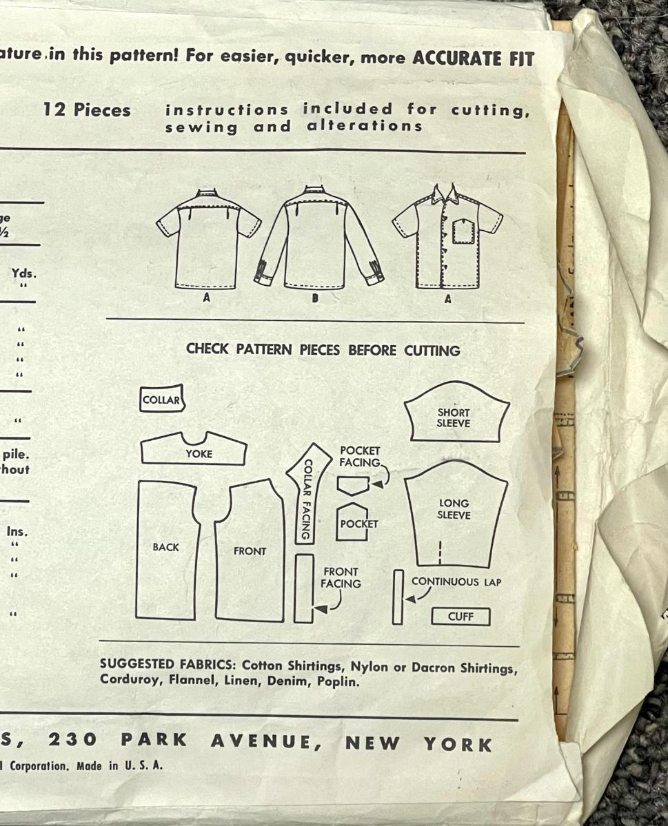 McCall’s Men’s Sport Shirt “Easy to Sew” 3904 1956 size large. All pieces verified.