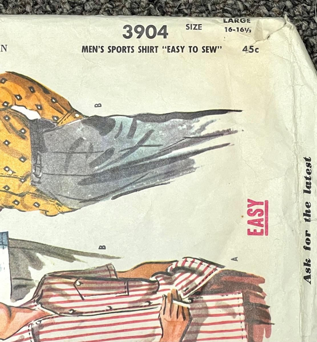 McCall’s Men’s Sport Shirt “Easy to Sew” 3904 1956 size large vintage sewing pattern