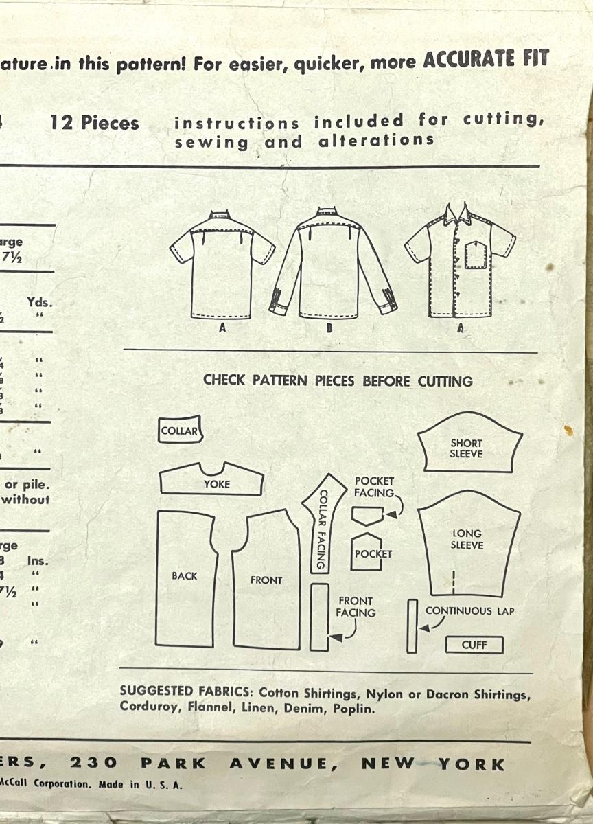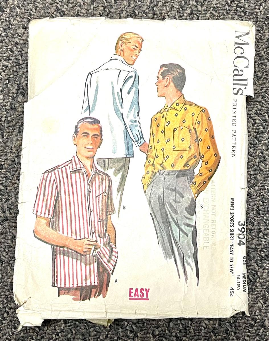 McCall’s Men’s Sports Shirt “Easy to Sew” No. 3904 size medium 15-15 1/2 1956