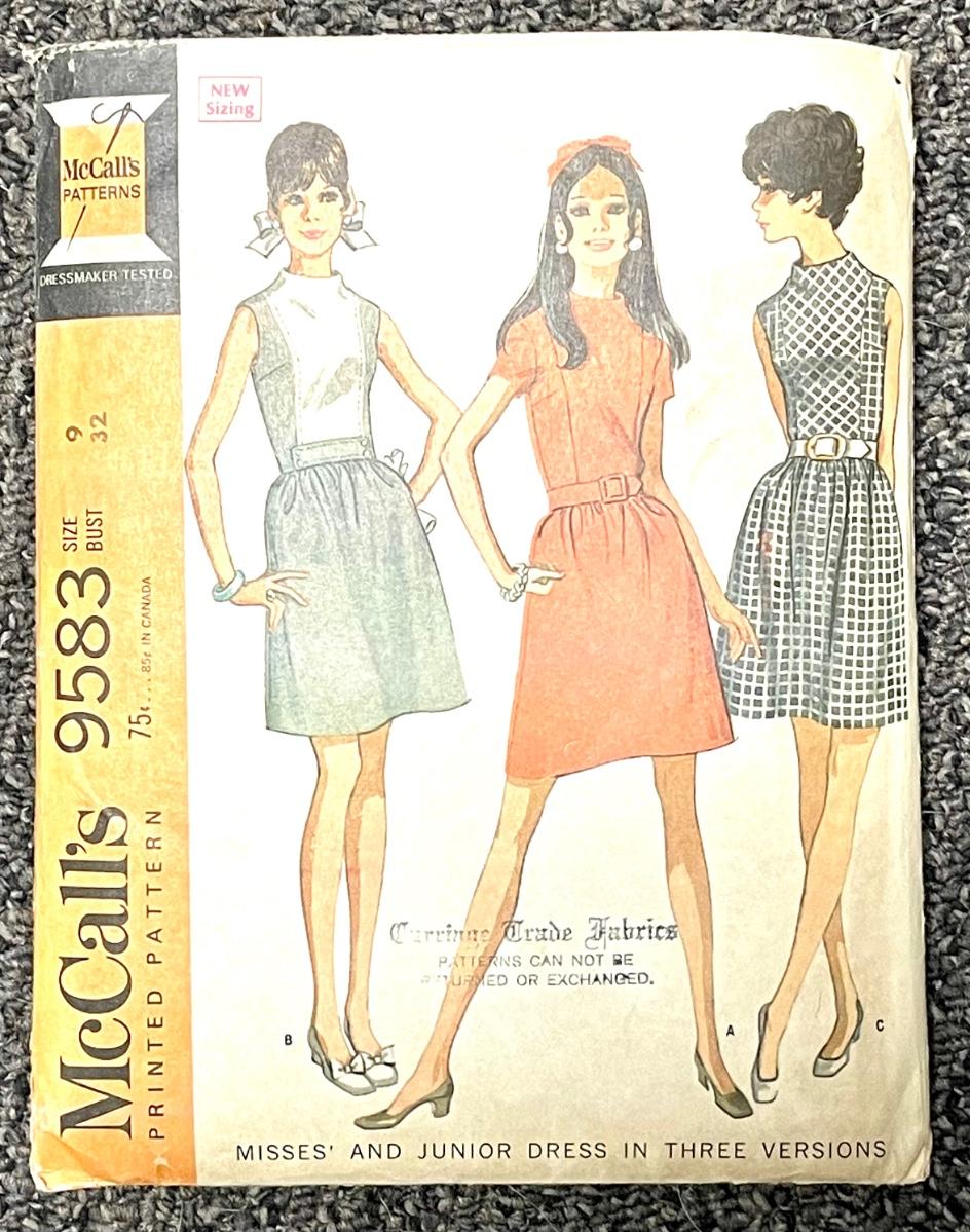 McCall’s Misses’ and Junior Dress in Three Versions No. 9583 size 9 bust 32 1968