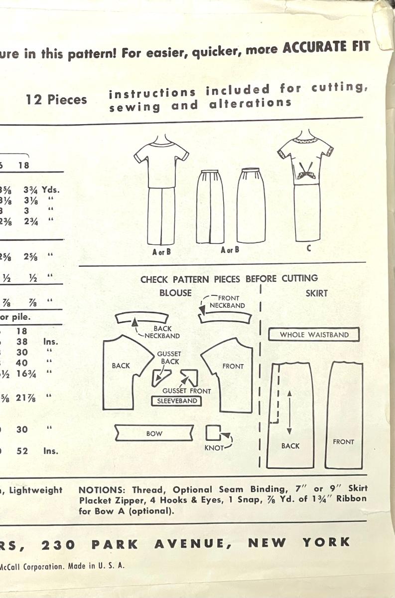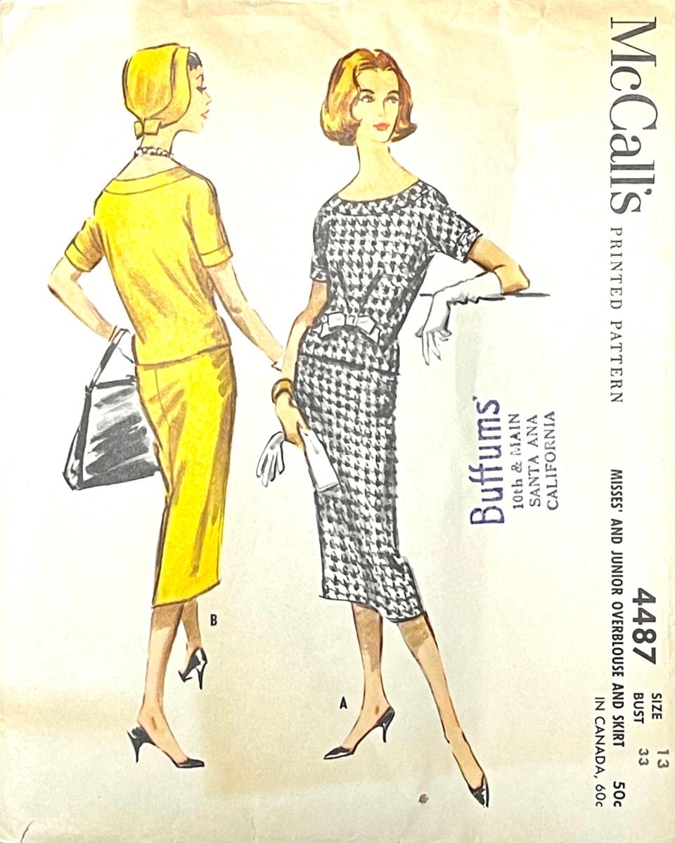 McCall’s Misses’ and Junior Overblouse and Skirt No. 4487 size 13 bust 33 1958. All pieces verified.