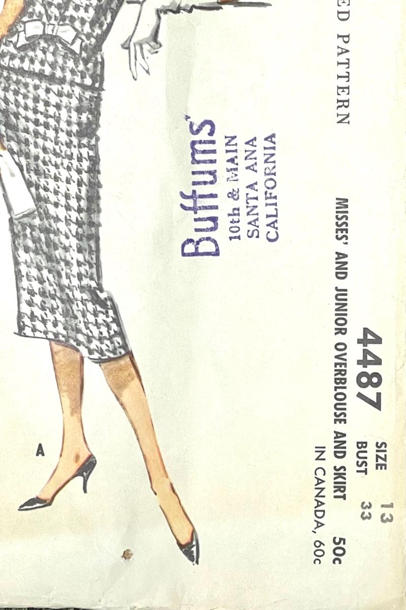 McCall’s Misses’ and Junior Overblouse and Skirt No. 4487 size 13 bust 33 1958