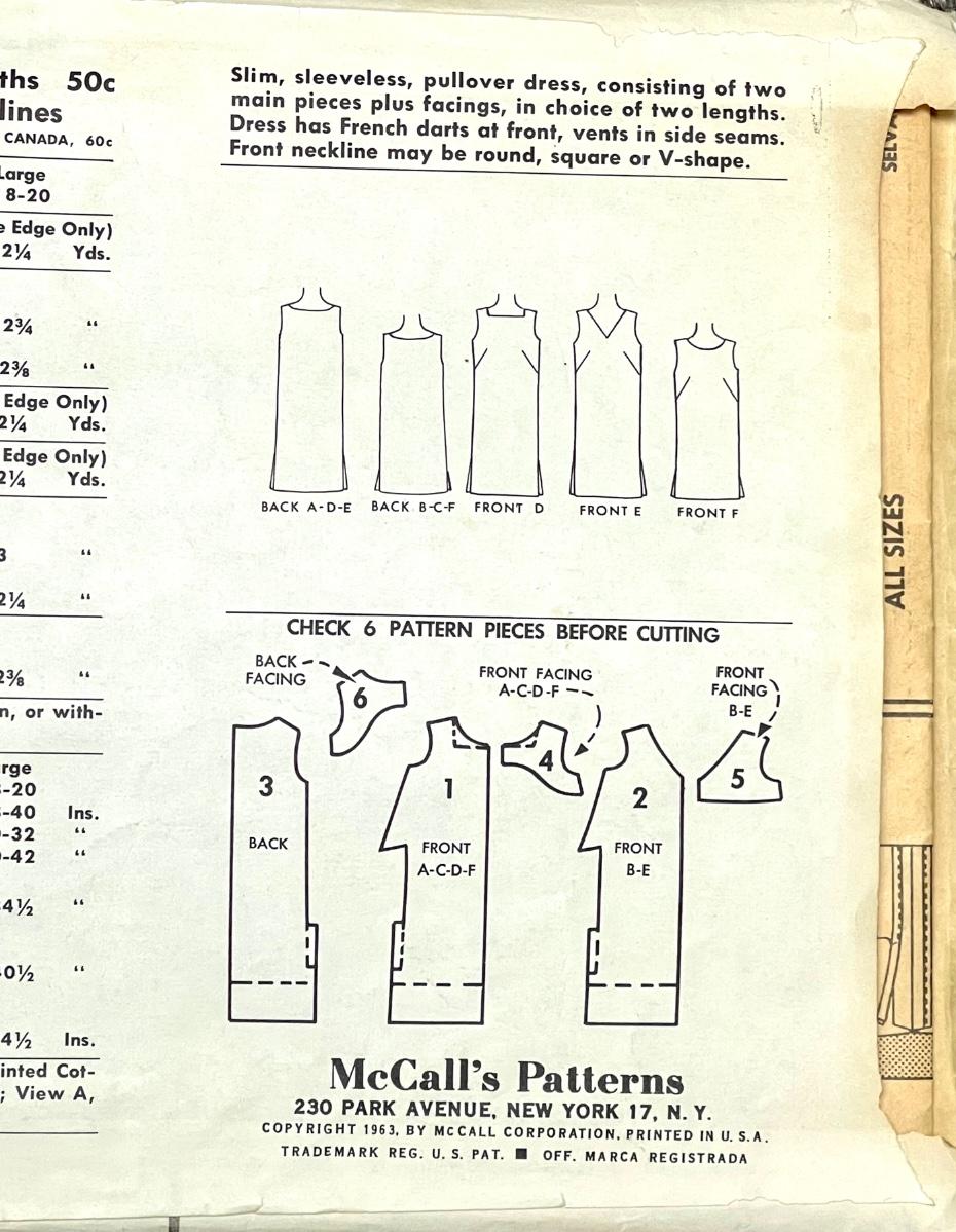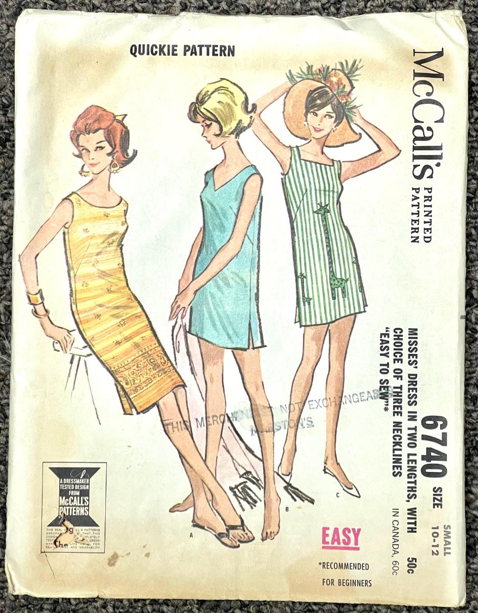 McCall’s Misses’ Dress in Two Lengths, with Choice of Three Necklines “Easy to Sew” No. 6740 size small 10-12 1963. All pieces verified.