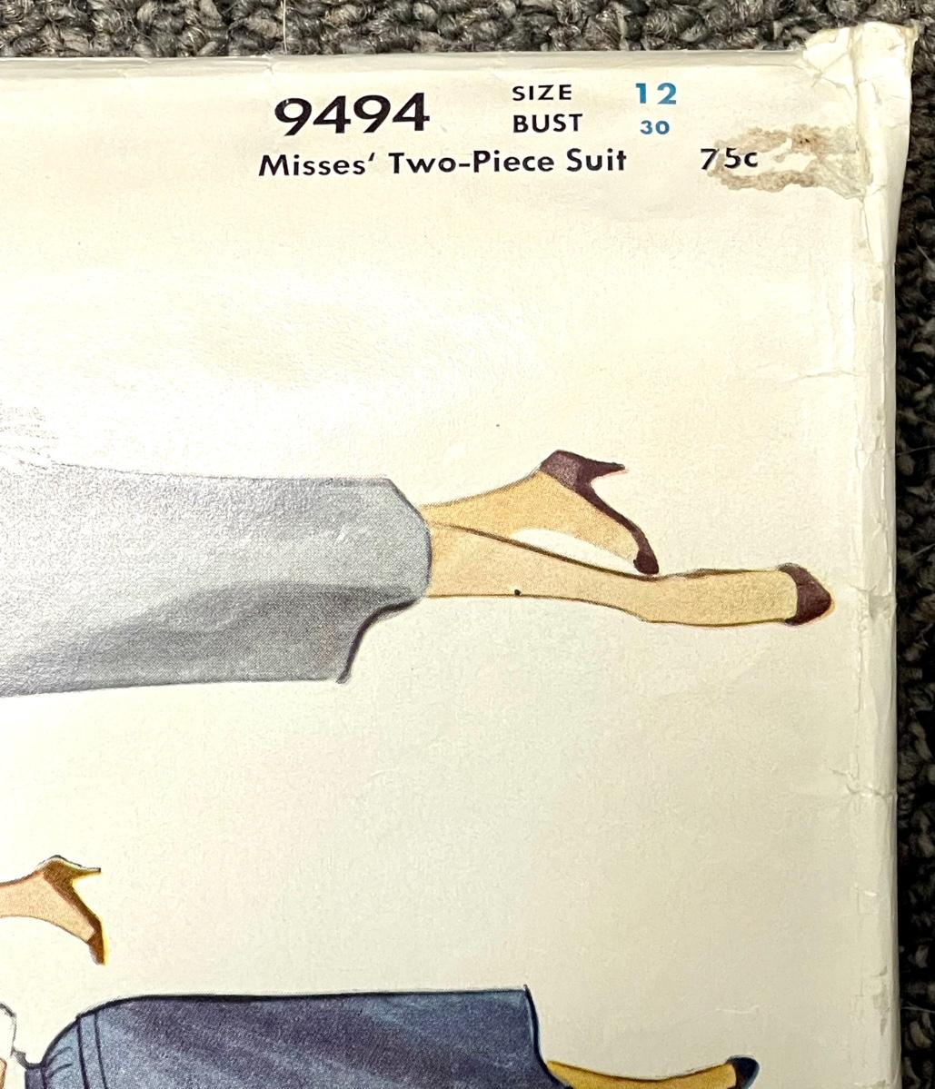 McCall’s Misses Two-Piece Suit No. 9494 size 12 bust 30. All pieces included.