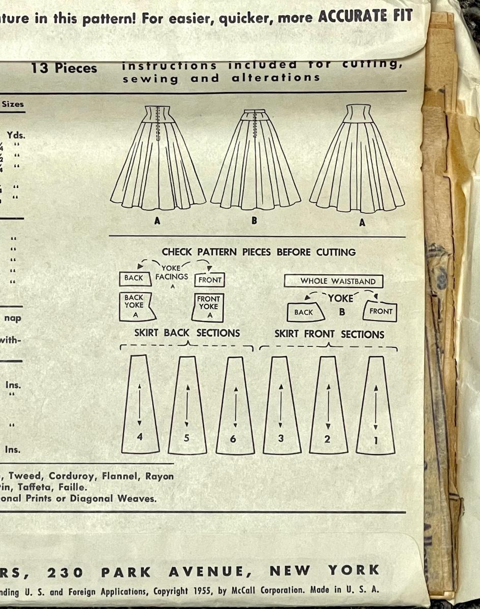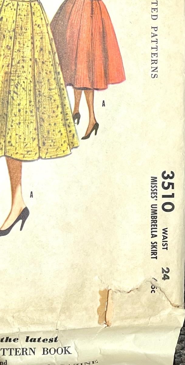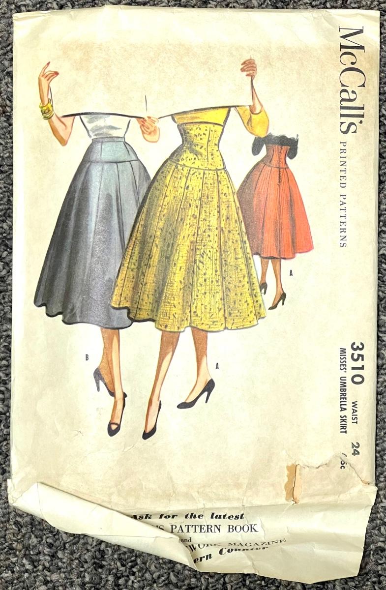 McCall’s Misses’ Umbrella Skirt No. 3510 waist 24 1955. All pieces verified.