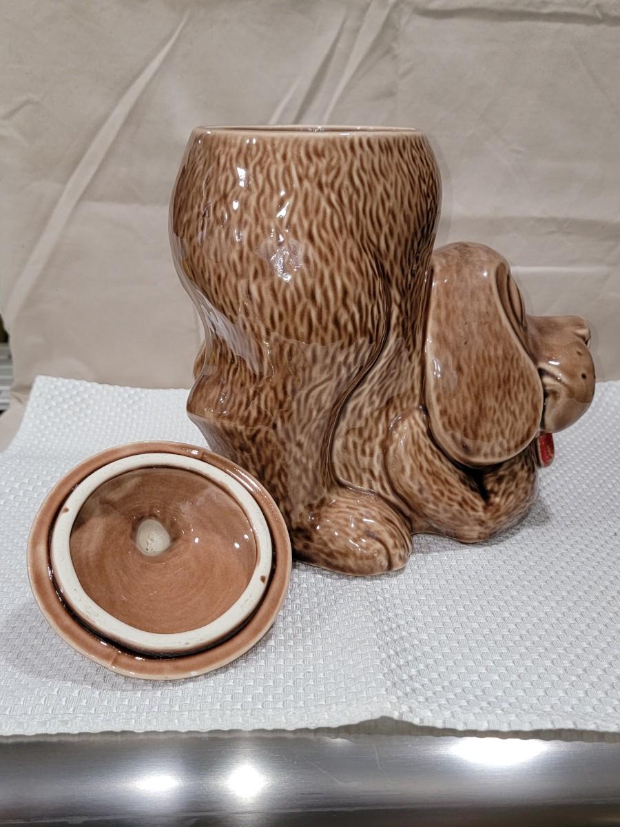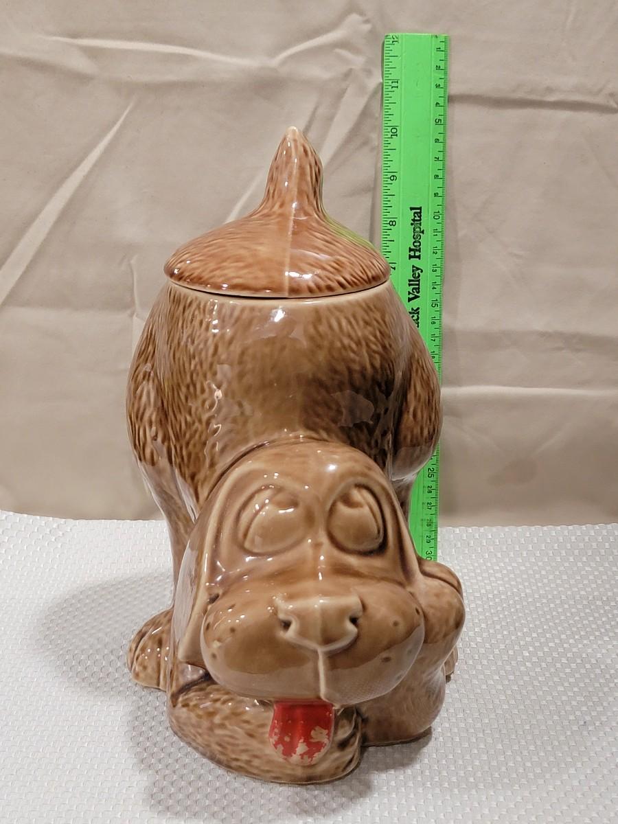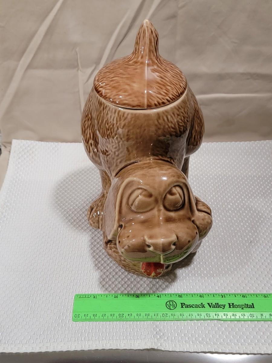 Hound dog cookie jar. McCoy 0272. No noted chips, but the paint on the tongue is not perfect as seen in photos. Great for a dog treat jar.