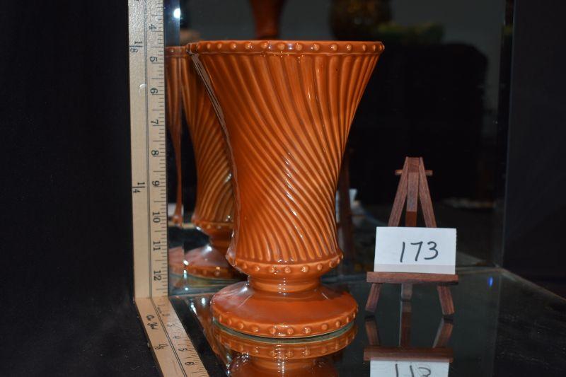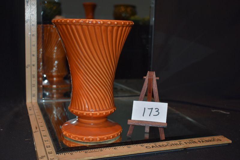 McCoy 1962 Orange Swirl Vase on Pedestal