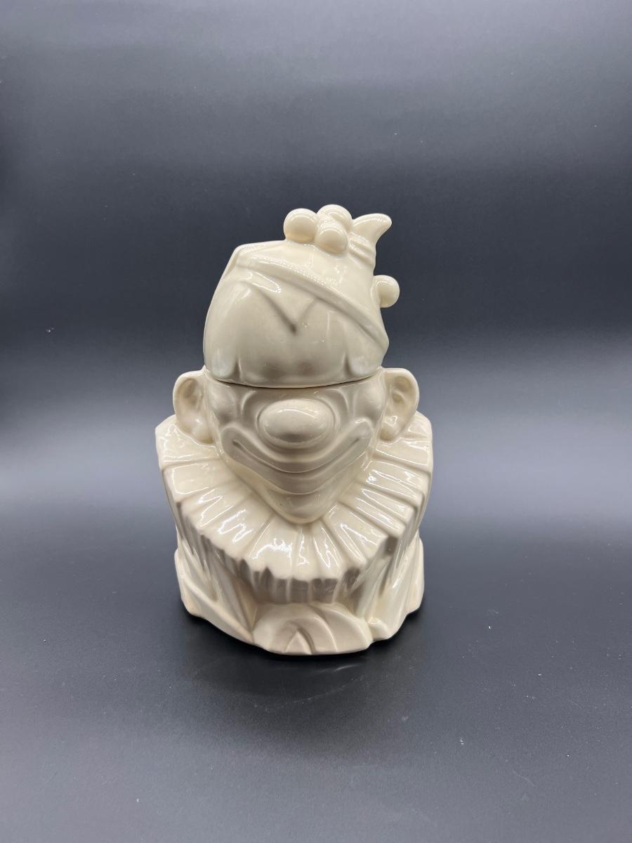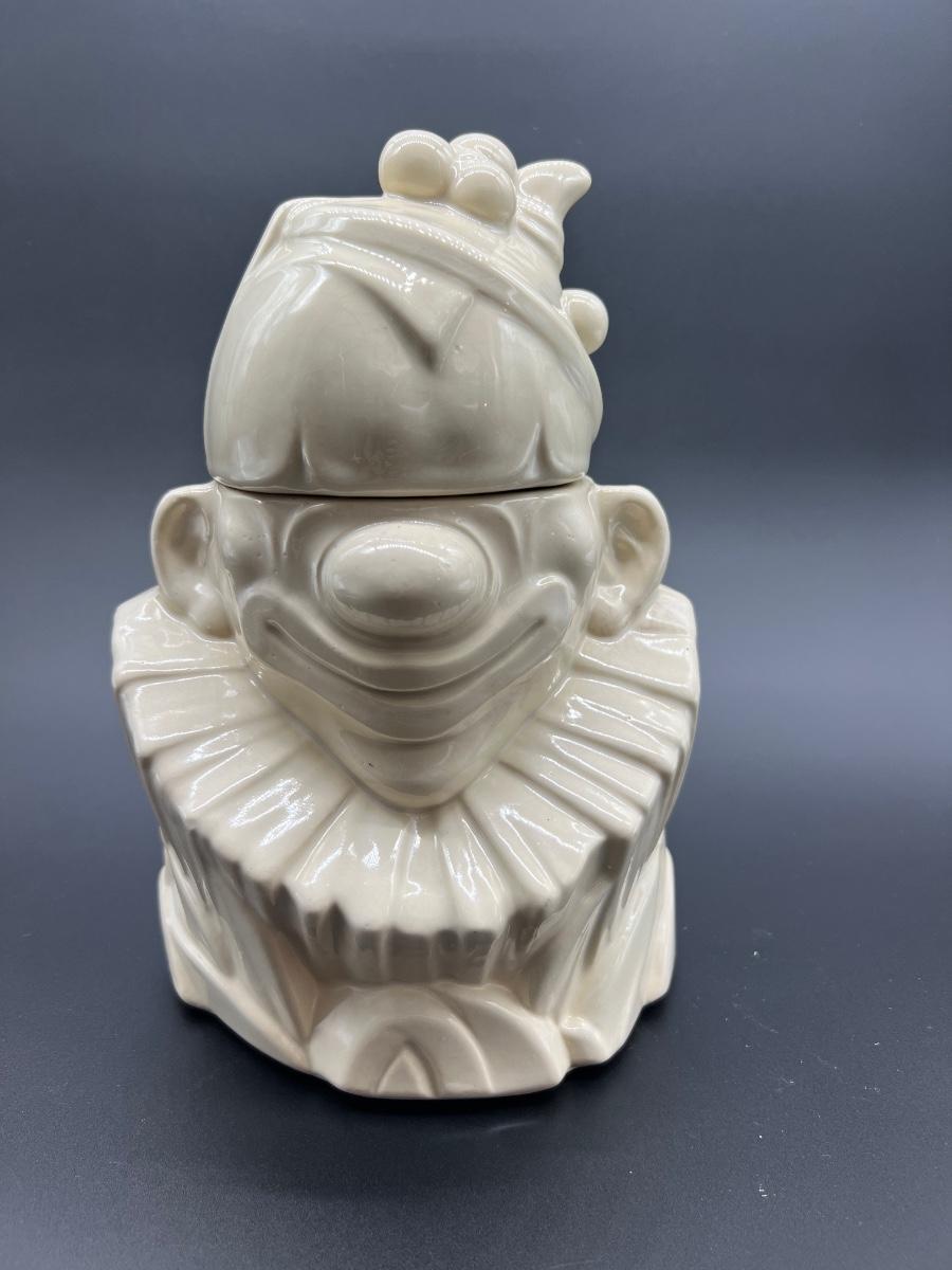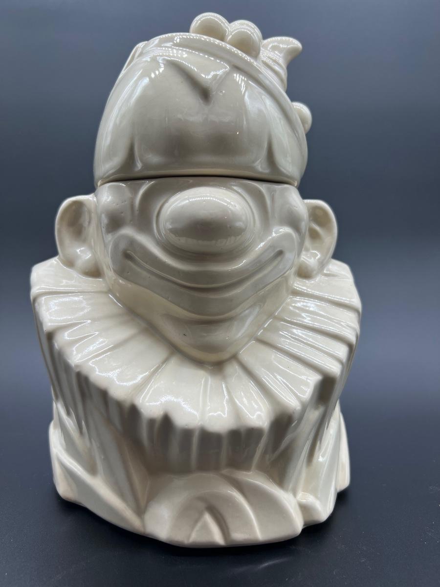 MCCOY CLOWN COOKIE JAR Bone White measures 10 1/2 Tall, 7 inches wide , 7 1/2 inches deep.