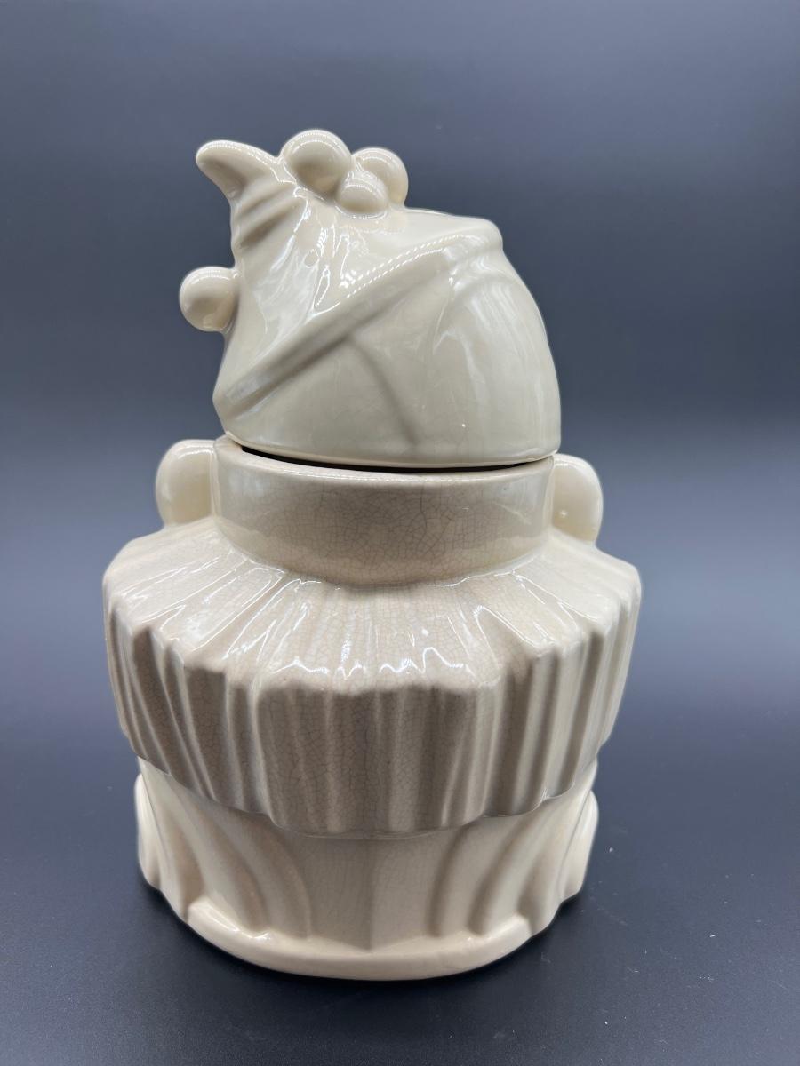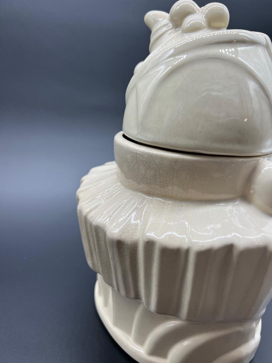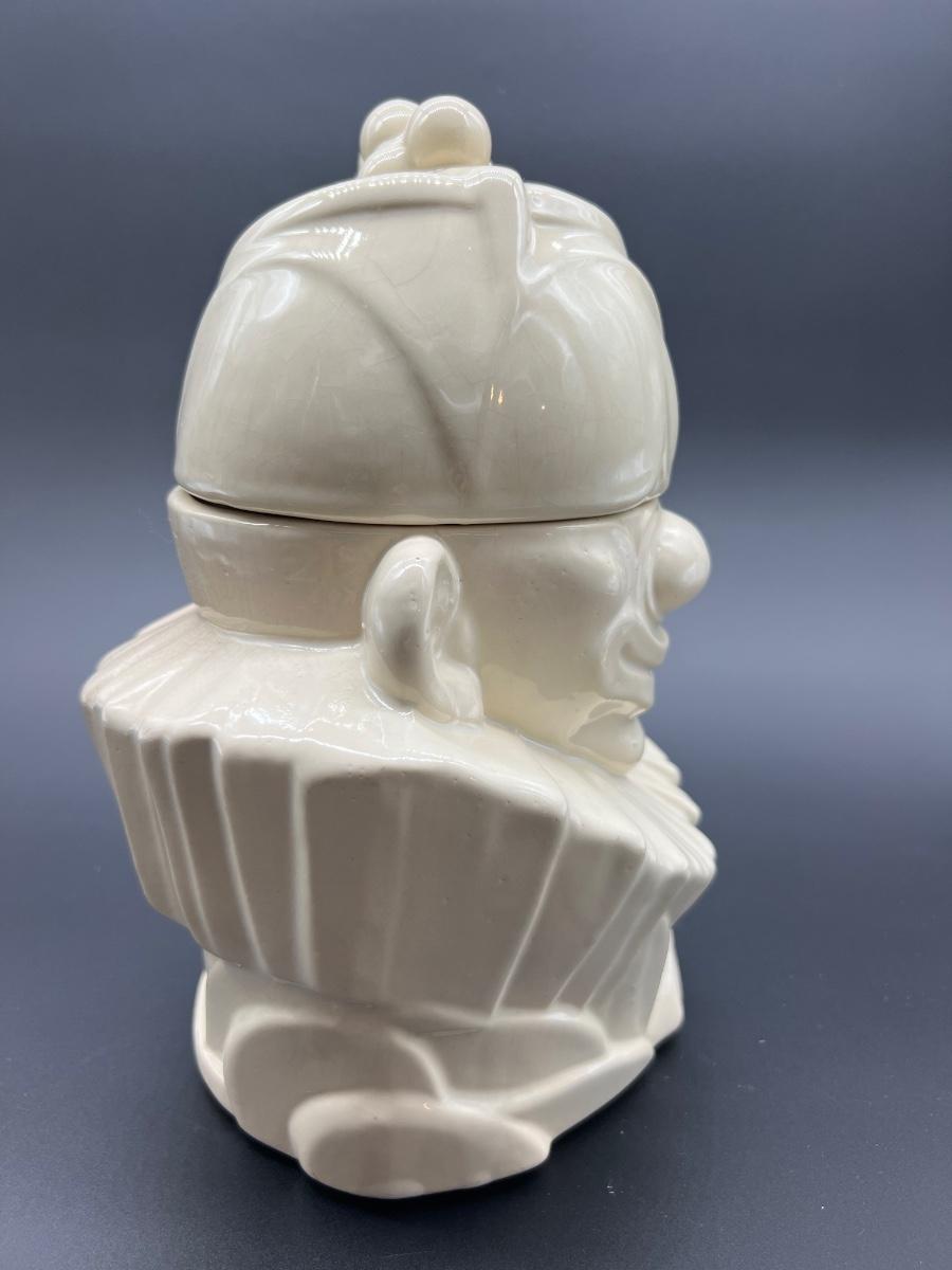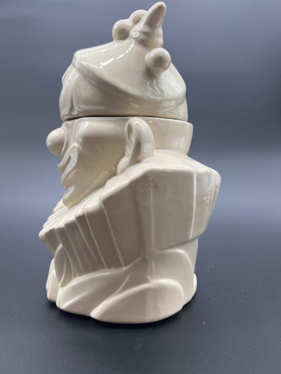 MCCOY CLOWN COOKIE JAR Bone White measures 10 1/2 Tall, 7 inches wide , 7 1/2 inches deep.