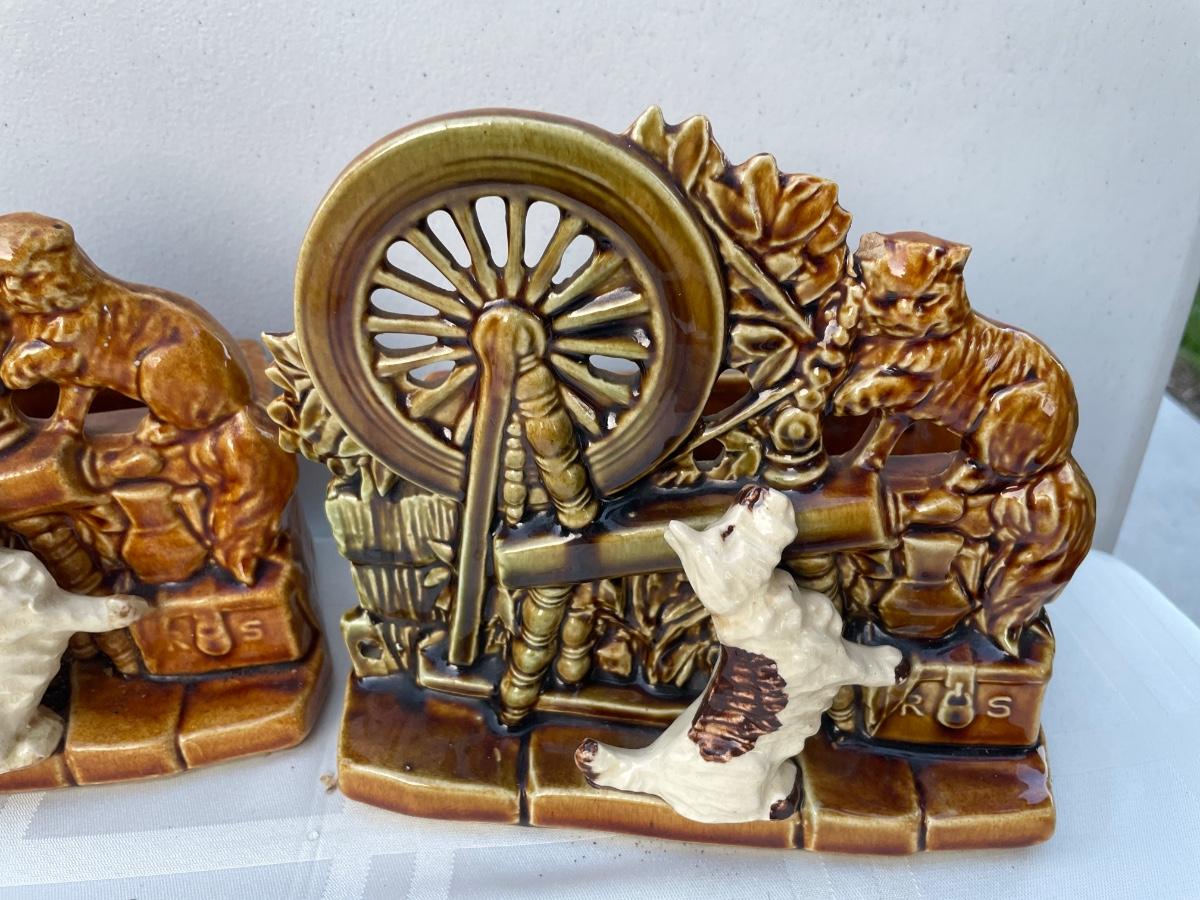 2 McCoy dog and cat planters