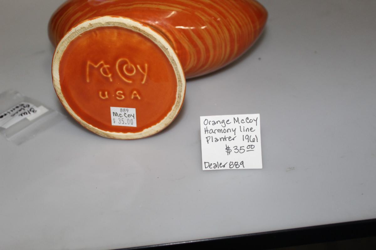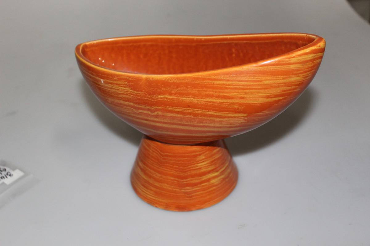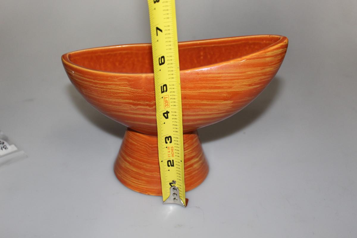 McCoy Harmony Line 1961 Pedestal Planter Tangerine Mid Century Art Pottery, 6 1/4"H x 8 1/2"L, EC