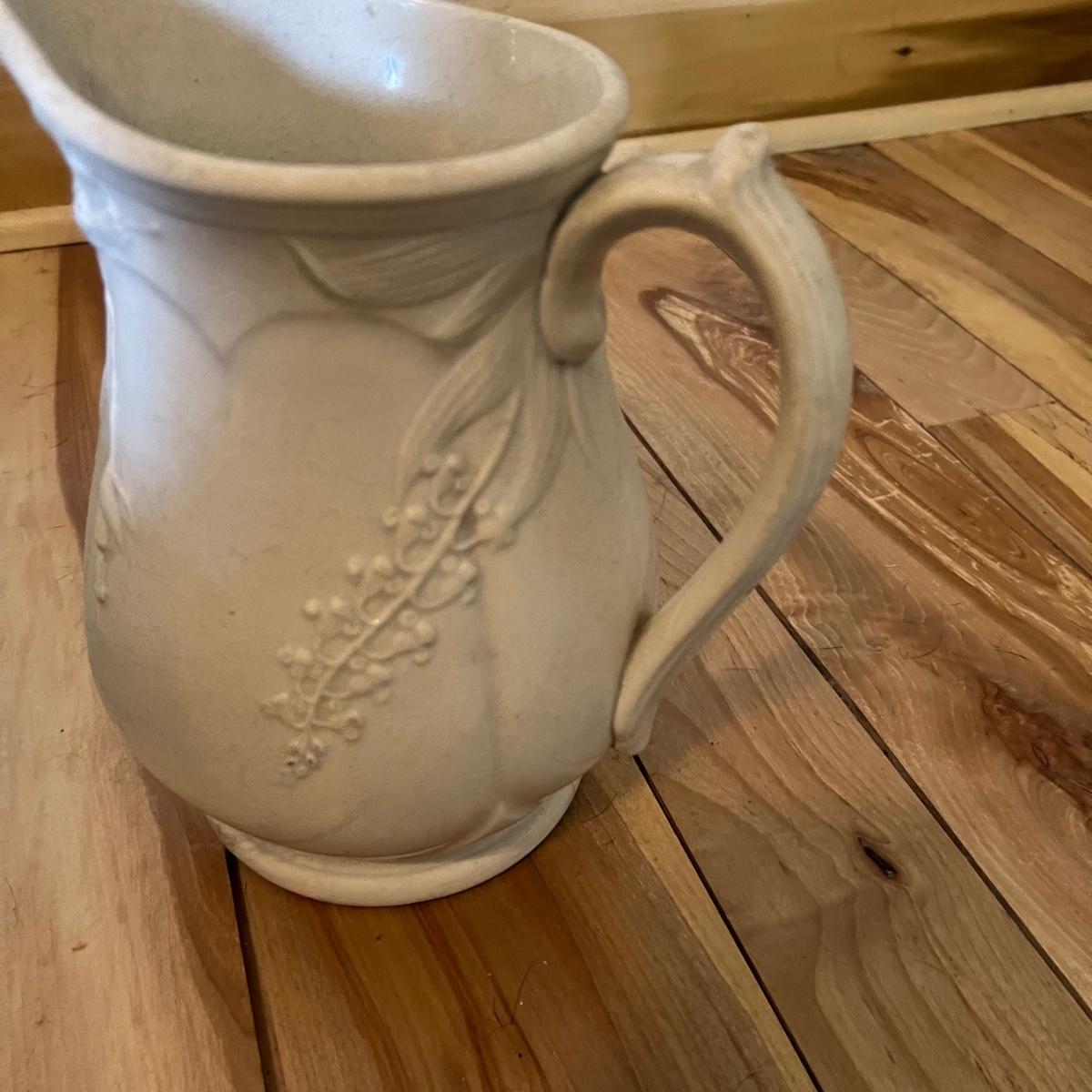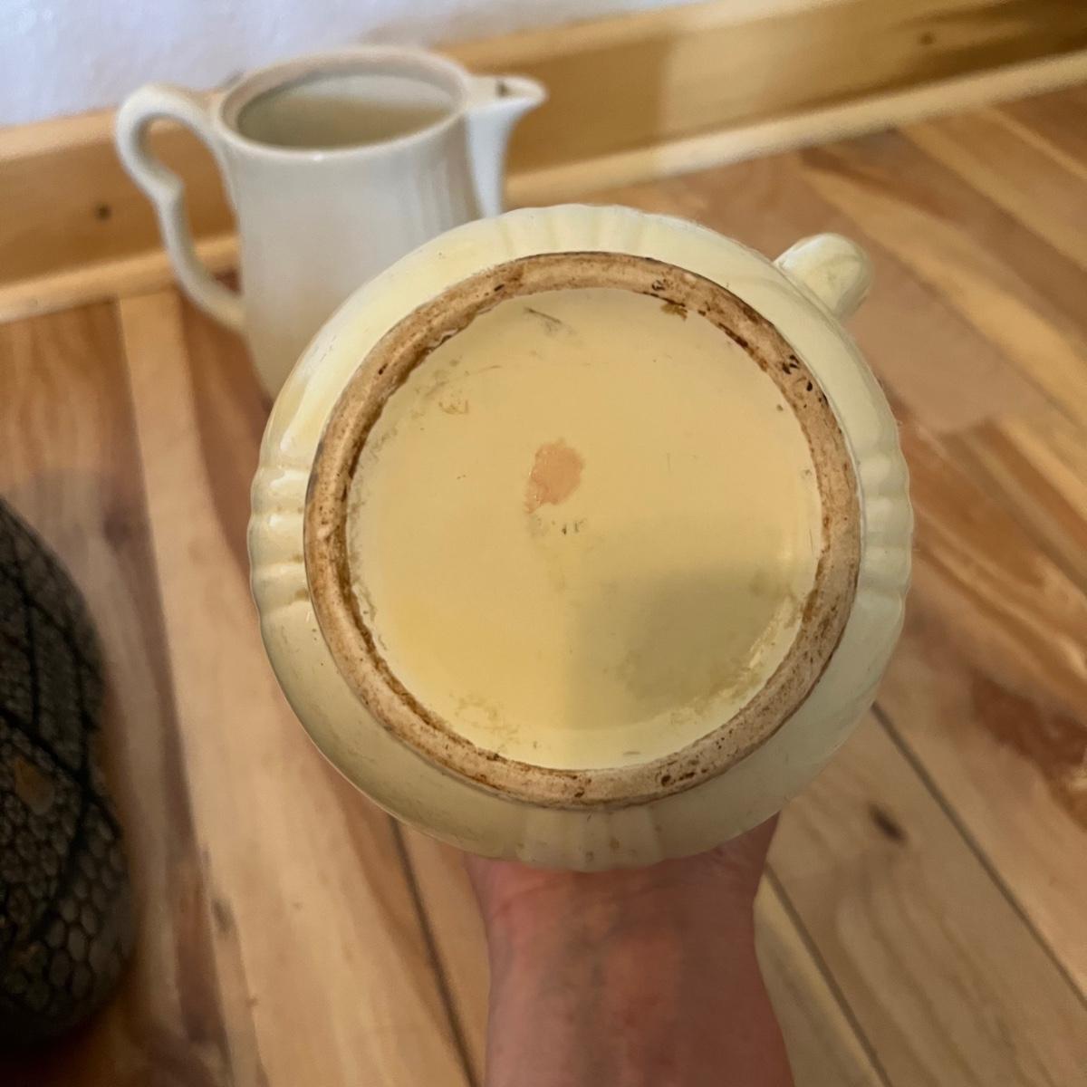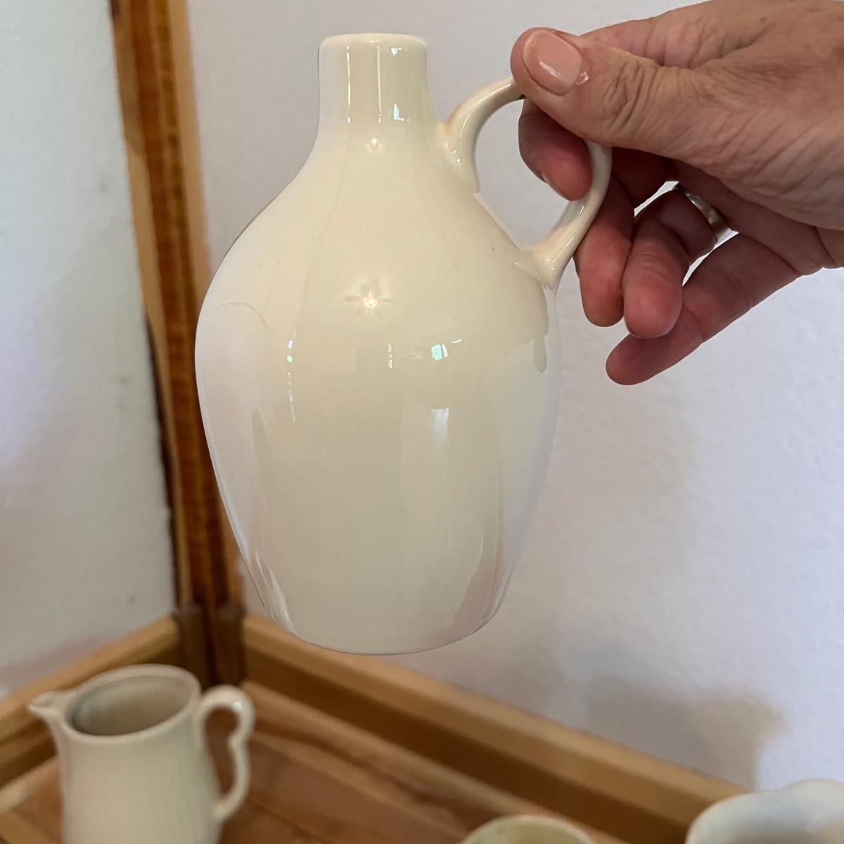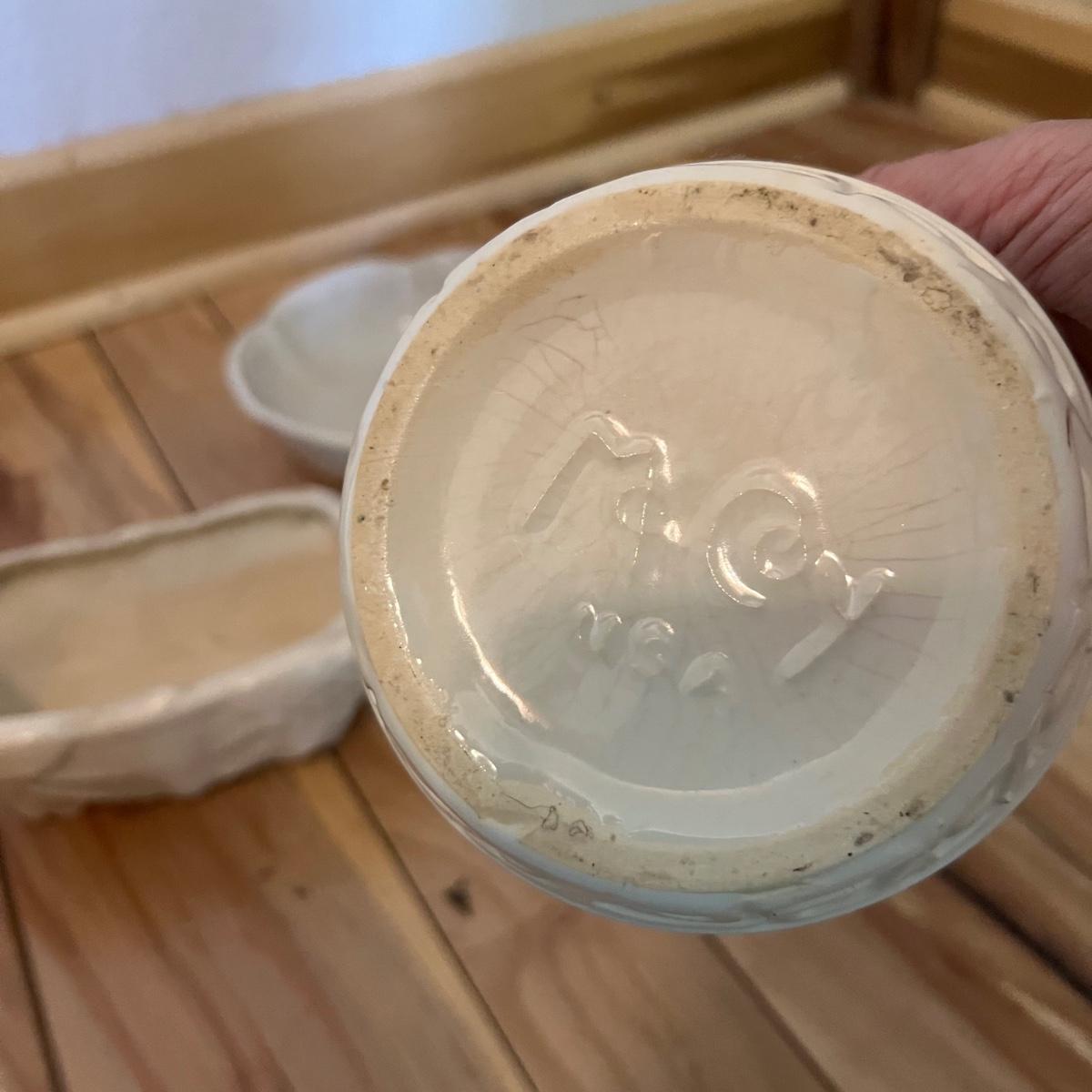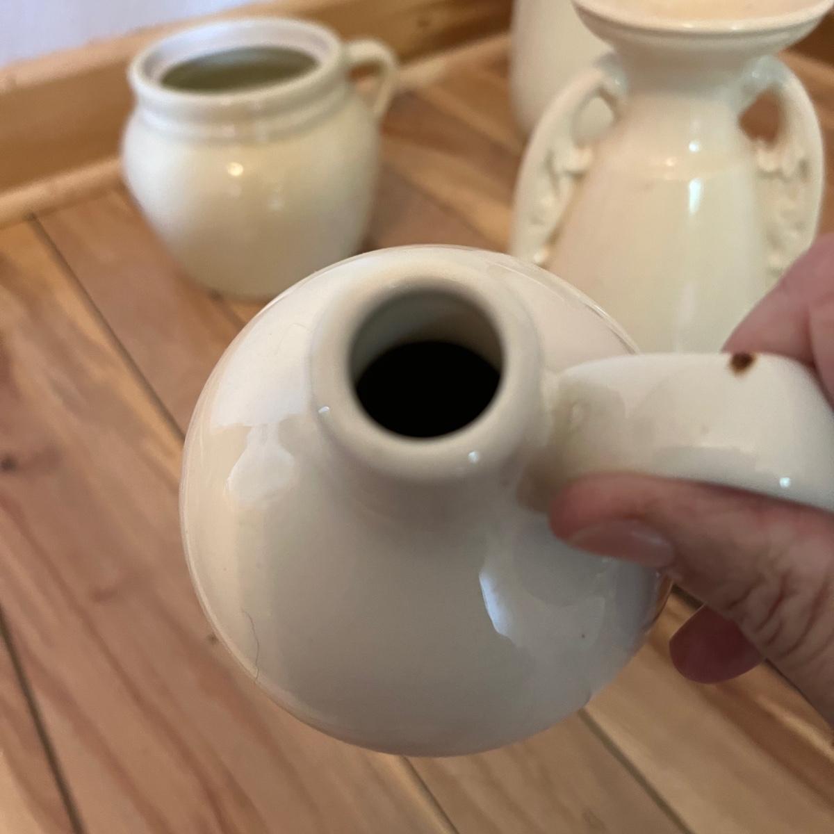 Thirteen pieces in this large assortment of pottery that includes some McCoy items and other pieces with possibly some Hull pieces, see images for all makers marks, etc. A few items have blemishes which are shown in images. Deco style vase is the tallest item measuring 4”D (base) x 11”H.