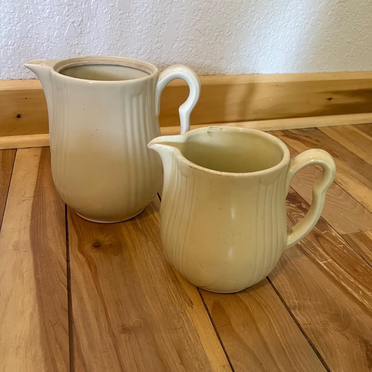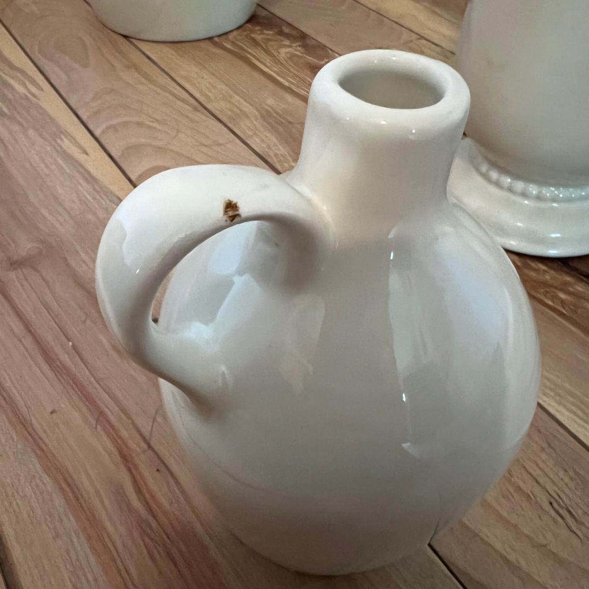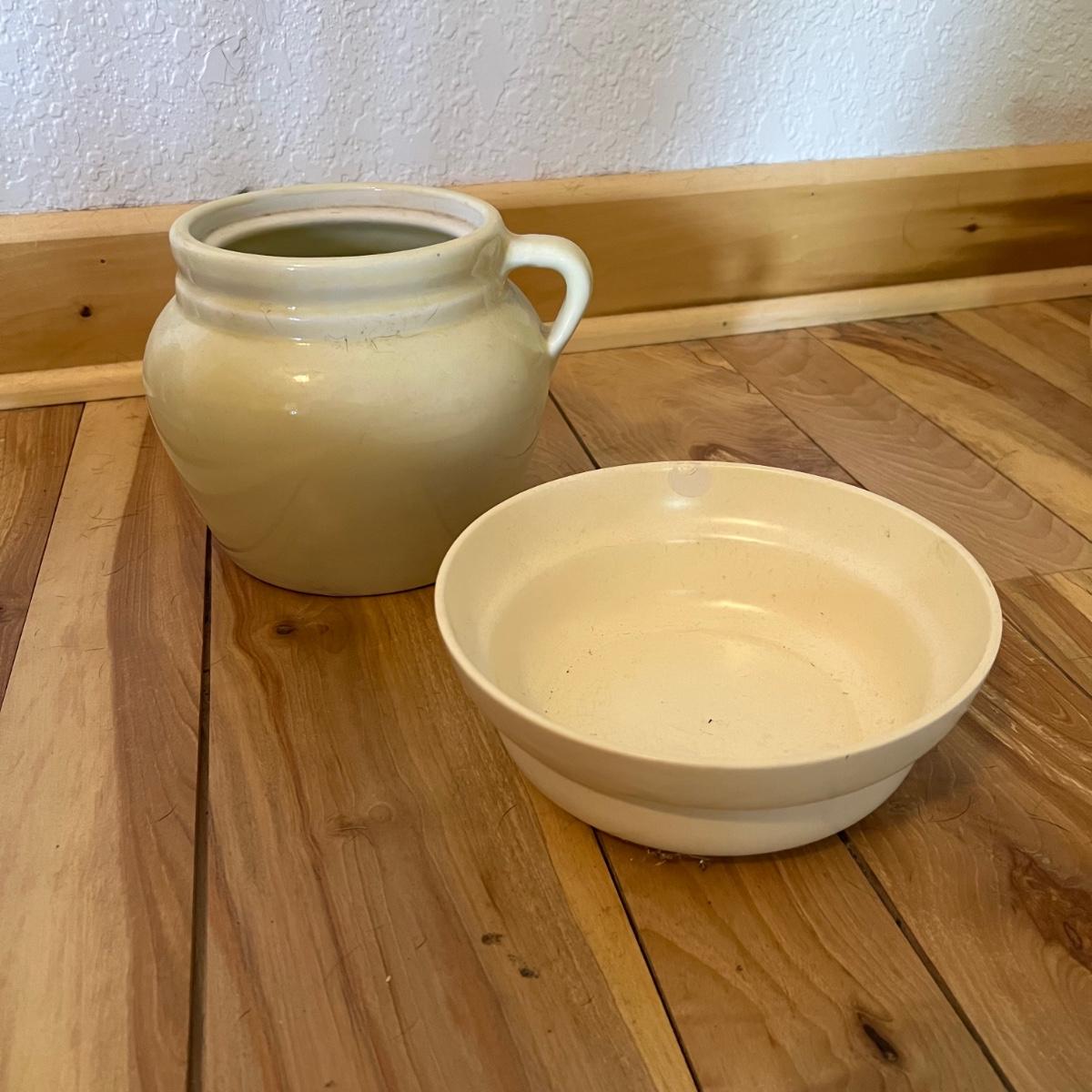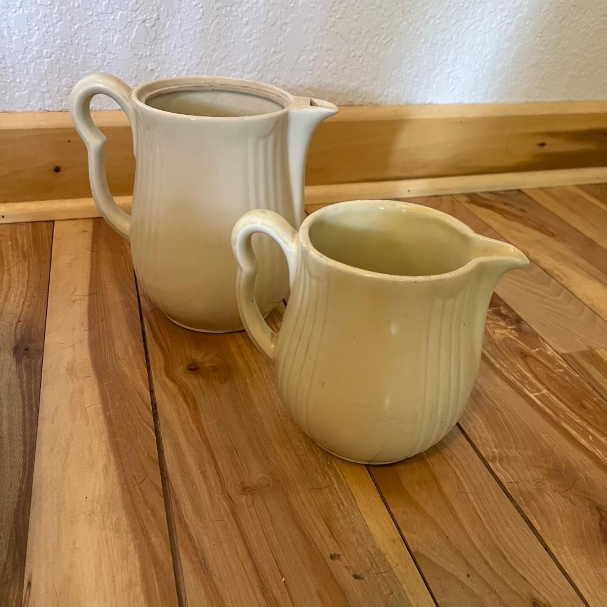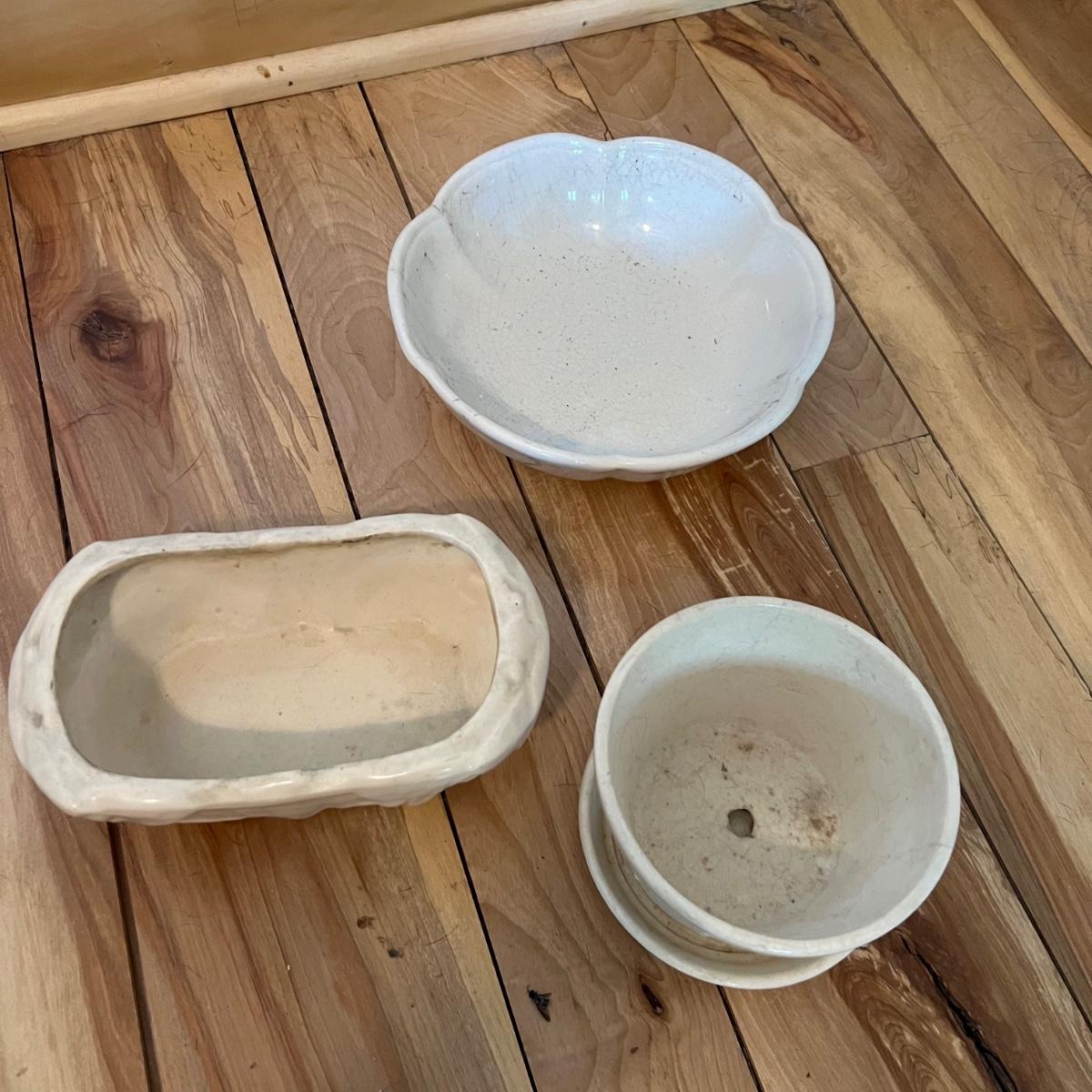Thirteen pieces in this large assortment of pottery that includes some McCoy items and other pieces with possibly some Hull pieces, see images for all makers marks, etc. A few items have blemishes which are shown in images. Deco style vase is the tallest item measuring 4”D (base) x 11”H.