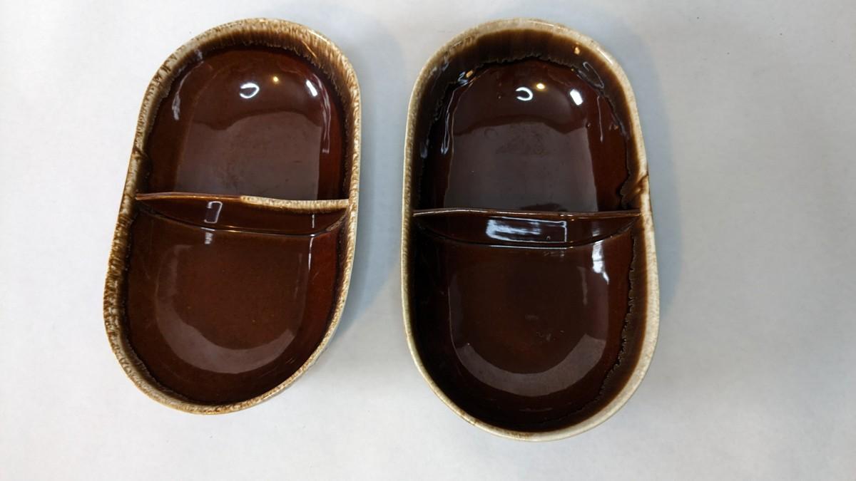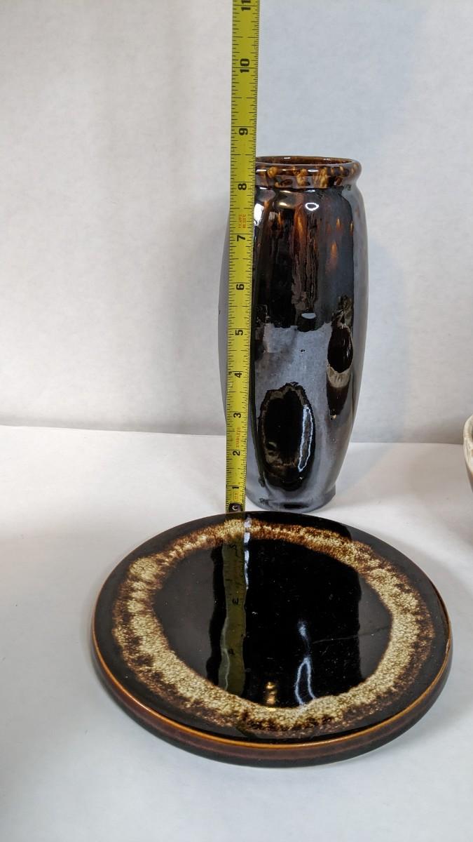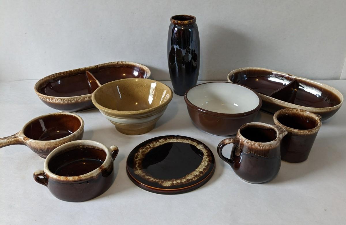3 small pieces of marked McCoy, 1 small piece of double handled Keystone, 2 divider dishes marked McCoy, and 4 unmarked pieces. 1 is a stunning redware crock bowl and the other a yellow ware. All pieces are in great condition and perfect for a number of uses or display!