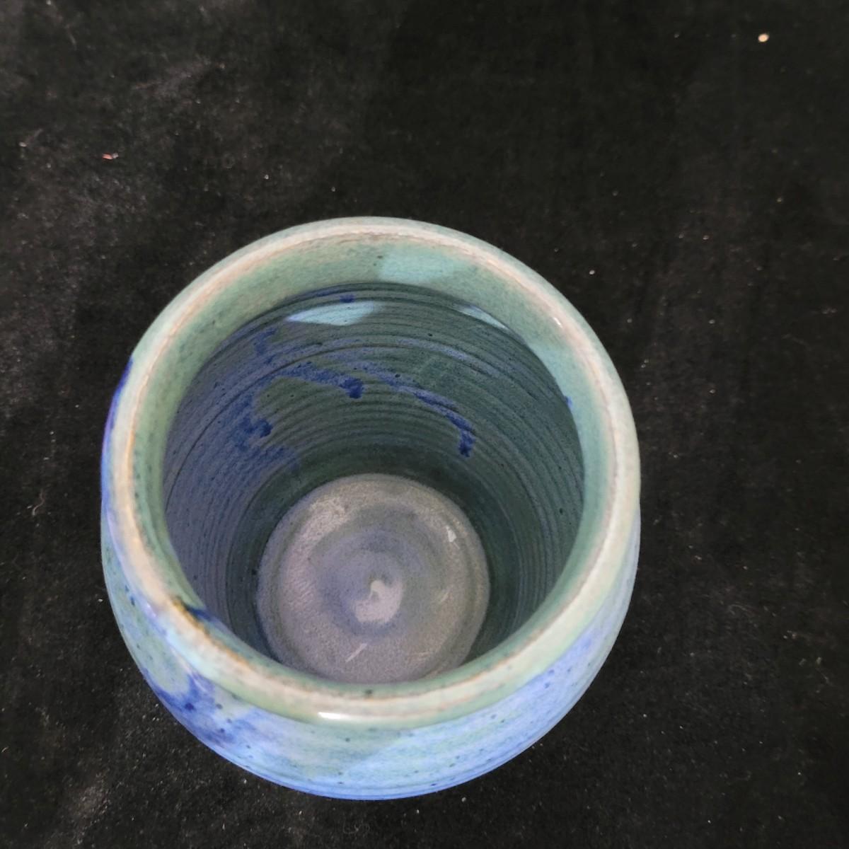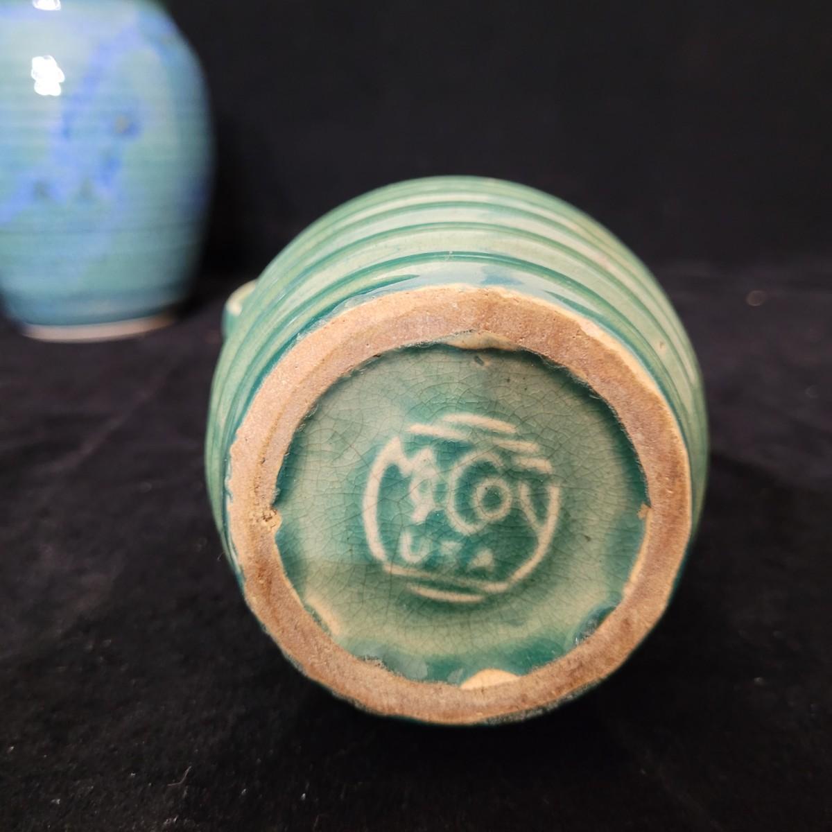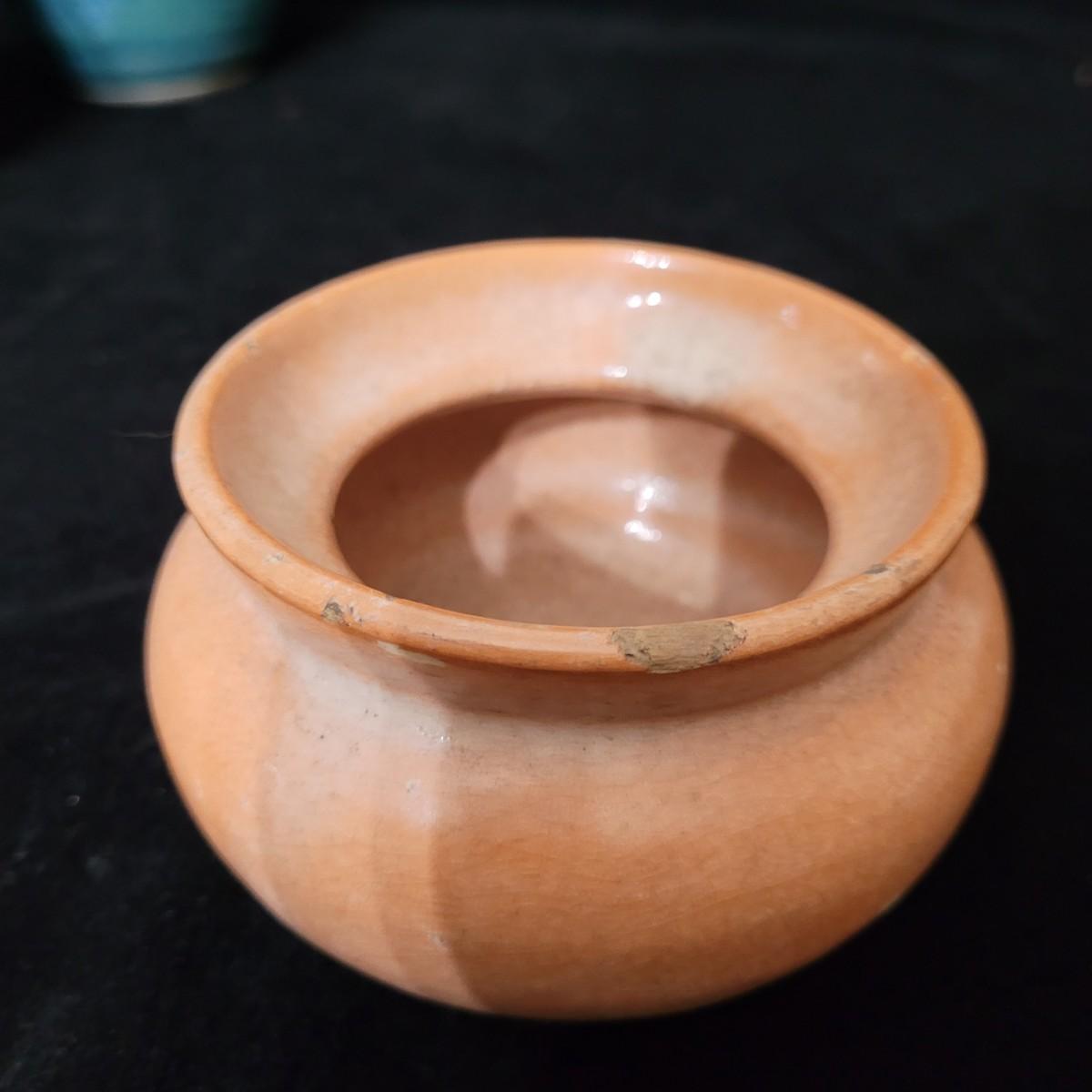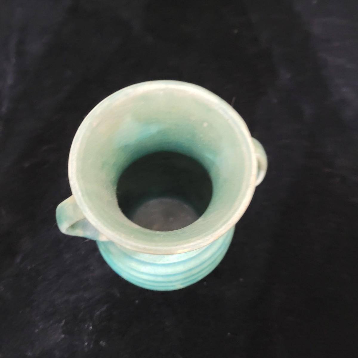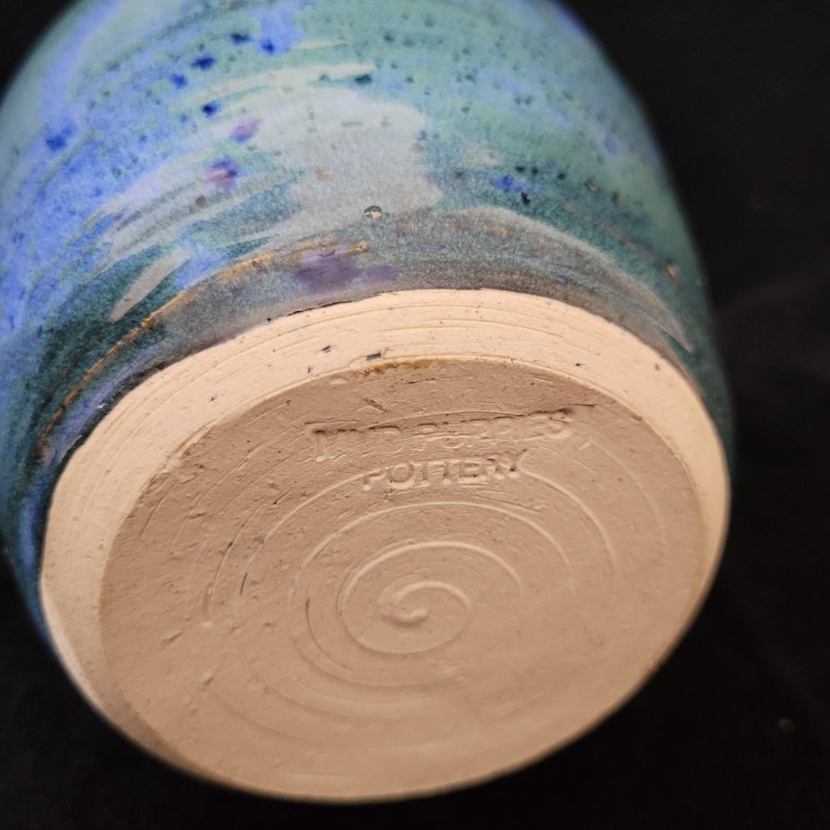 A lovely collection of pottery including a small McCoy vase, larger Mud Puppies Pottery vase, small decorative bowl, and rectangular Haeger planter dish. Bowl has chipping at lid (see photos). Large blue vase measures approximately 4"DIA x7"H. Shipping available.