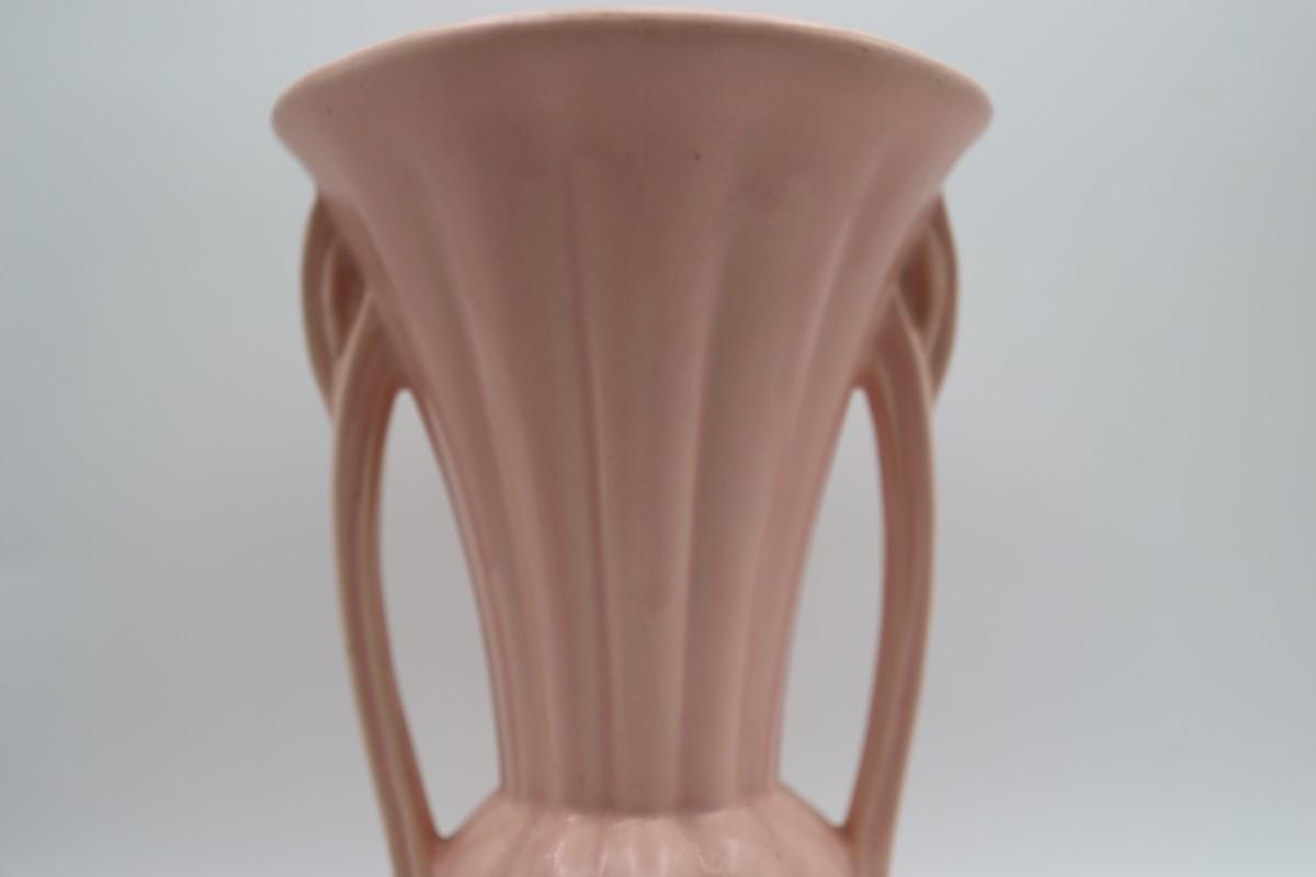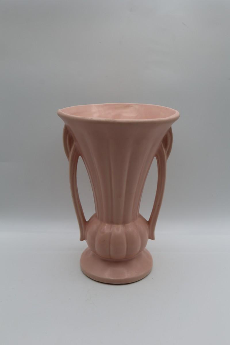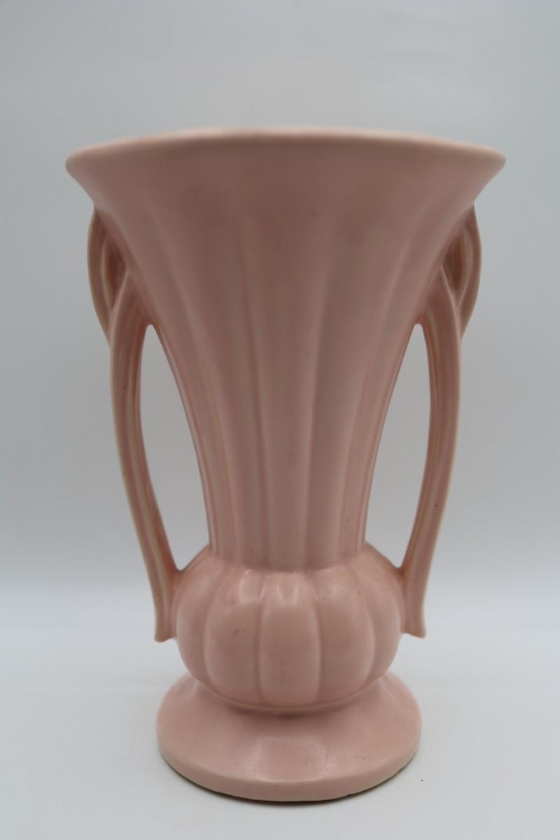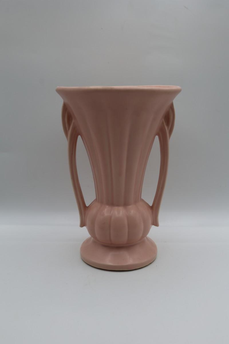 SIGNED McCoy Vintage Vase, Pale Pink with Two Handles