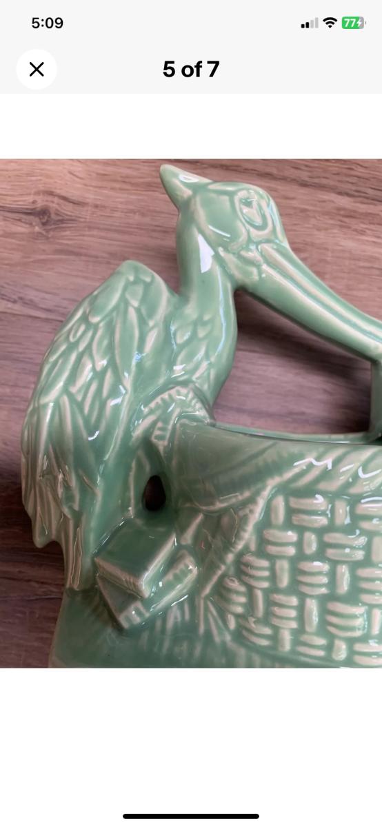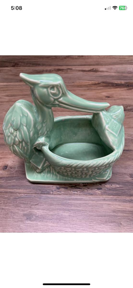 McCoy USA Green stork planter Nursery Line 1950’s. Excellent condition