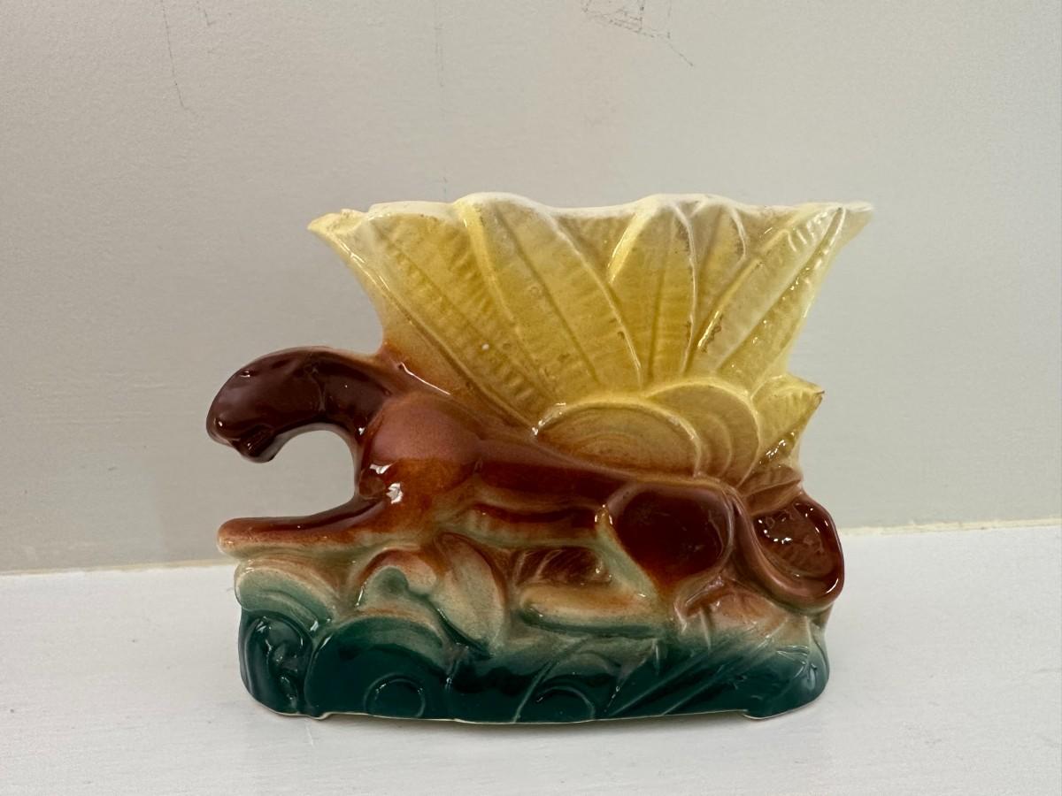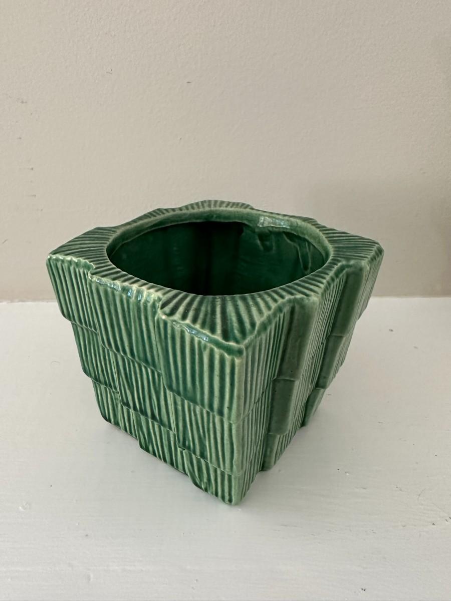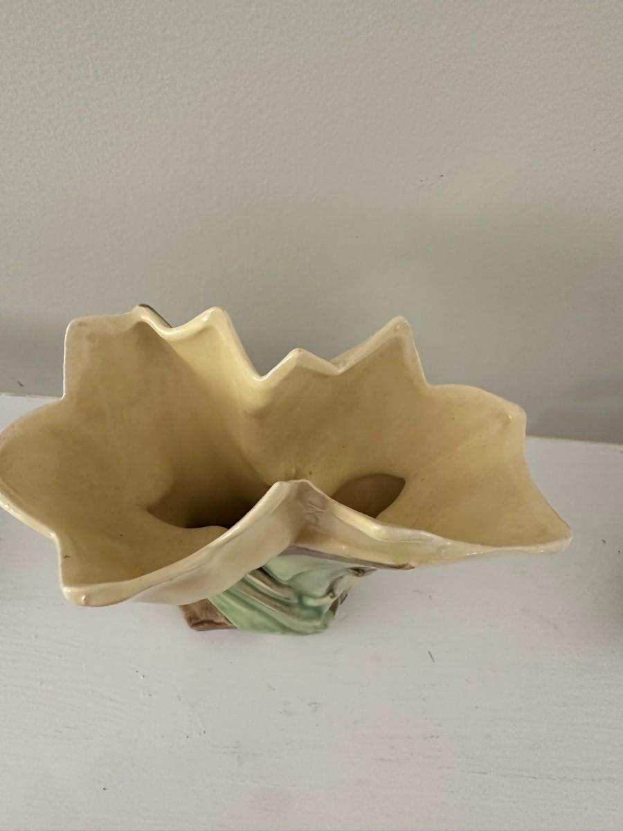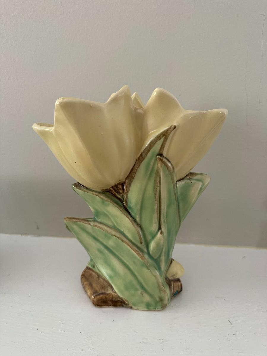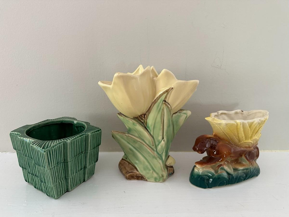 4" Green McCoy Pot, 8" McCoy Tulip Vase. Other vase is 6.5"w x 5'h