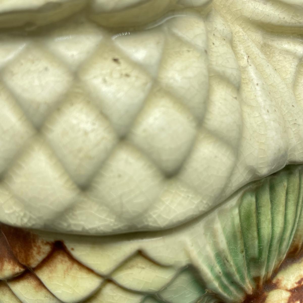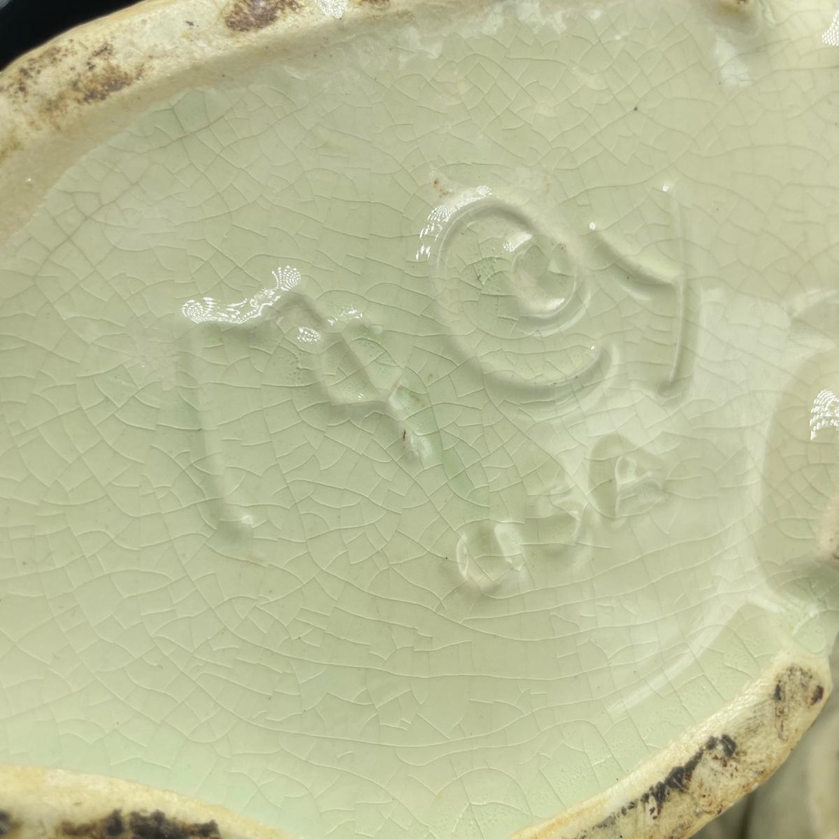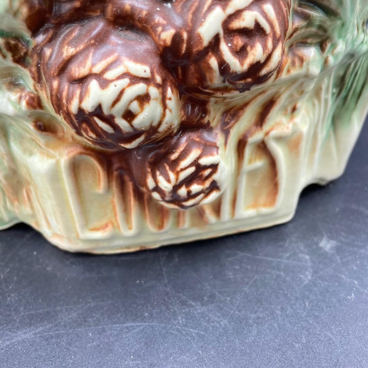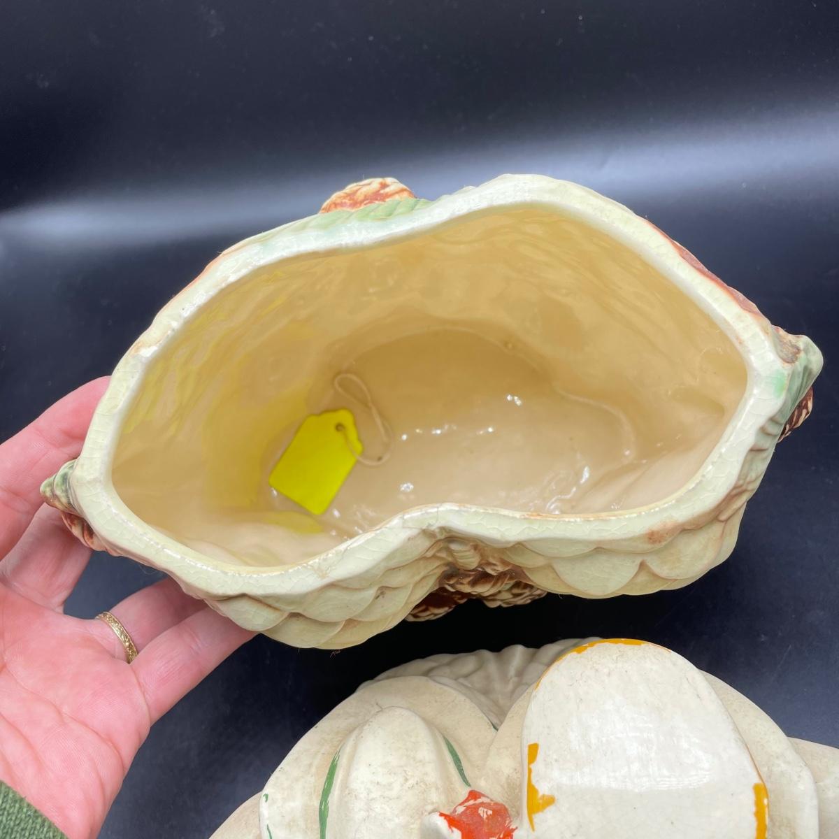Mid Century owl couple cookie jar from McCoy named “When Shadows Fall”. Jar has crazing throughout and some worn off paint, but it’s in great shape otherwise. Piece measures approximately 9” x 5” x 11”. Shipping available.