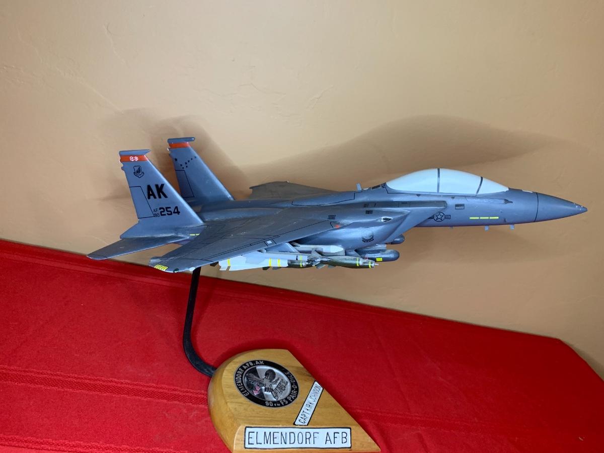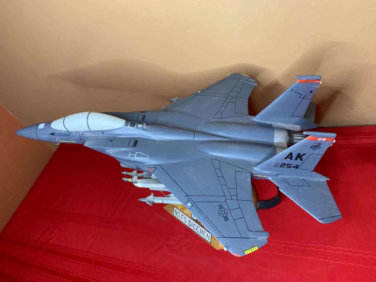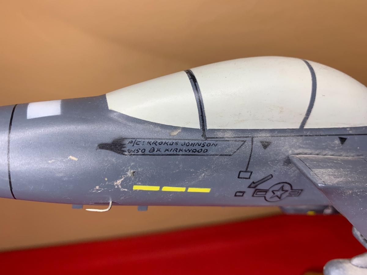 Mcdonald Douglas F15 Eagle Model Plane with name labeling on it. In good condition (17 1/2 inches in length)